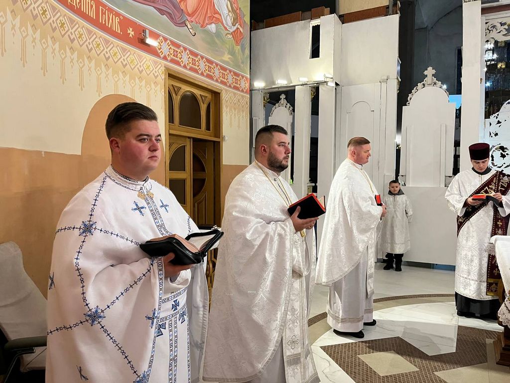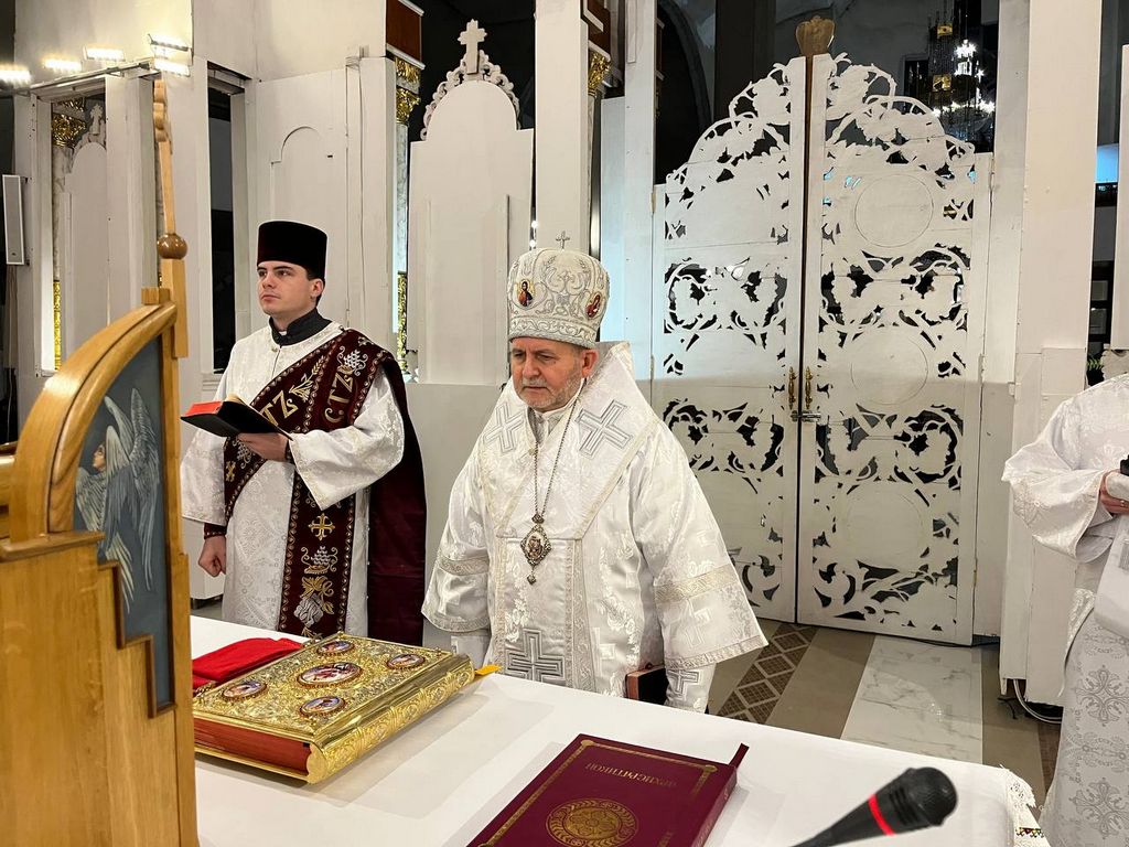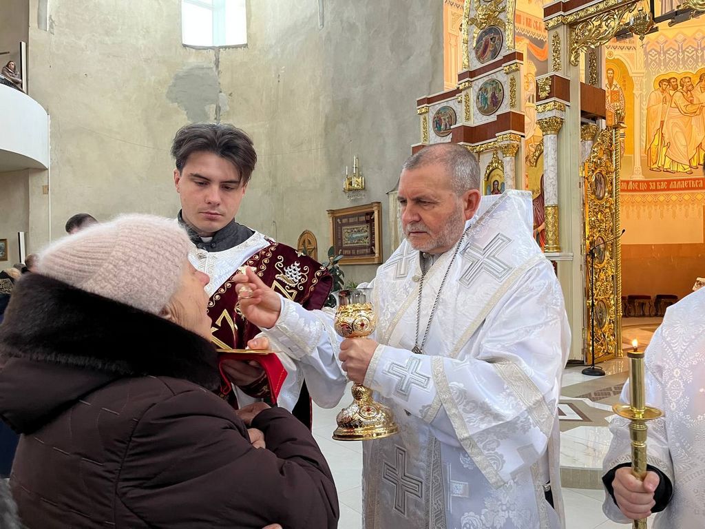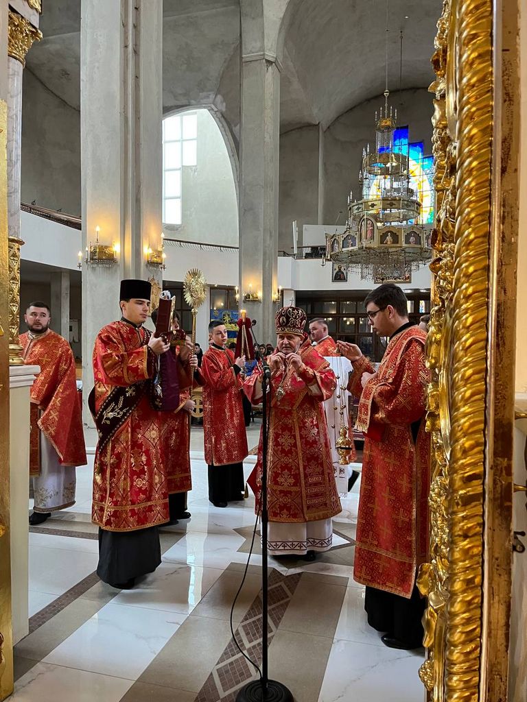 Одразу після завершення цього богослужіння розпочалася урочиста архиєрейська Божественна Літургія. Різдвяне богослужіння зібрало у храмі багатьох вірних, які спільно з духовенством катедрального собору підносили свої молитви за мир в Україні, за припинення війни та благополуччя народу. Після прочитання євангельського уривку, який цього дня розповідав про подію народження Христа, настоятель катедрального собору о. Андрій Лемчук виголосив різдвяне привітання преосвященного владики Дмитра Григорака, ЧСВВ в якому архиєрей звертає особливу увагу на значення свята в житті християнина особливо в світлі теперішніх важких випробування. “Його Царство починається у кожному, хто не є байдужим спостерігачем. Так, довкола нас вирує буря війни, звідусіль чигають небезпеки. Що ж, такі реалії нашого часу. Але знаємо, що найбільшою і наймогутнішою реальністю є Бог, який має владу спинити будь-яку бурю”, - говорить владика Дмитро у своєму посланні до вірних.