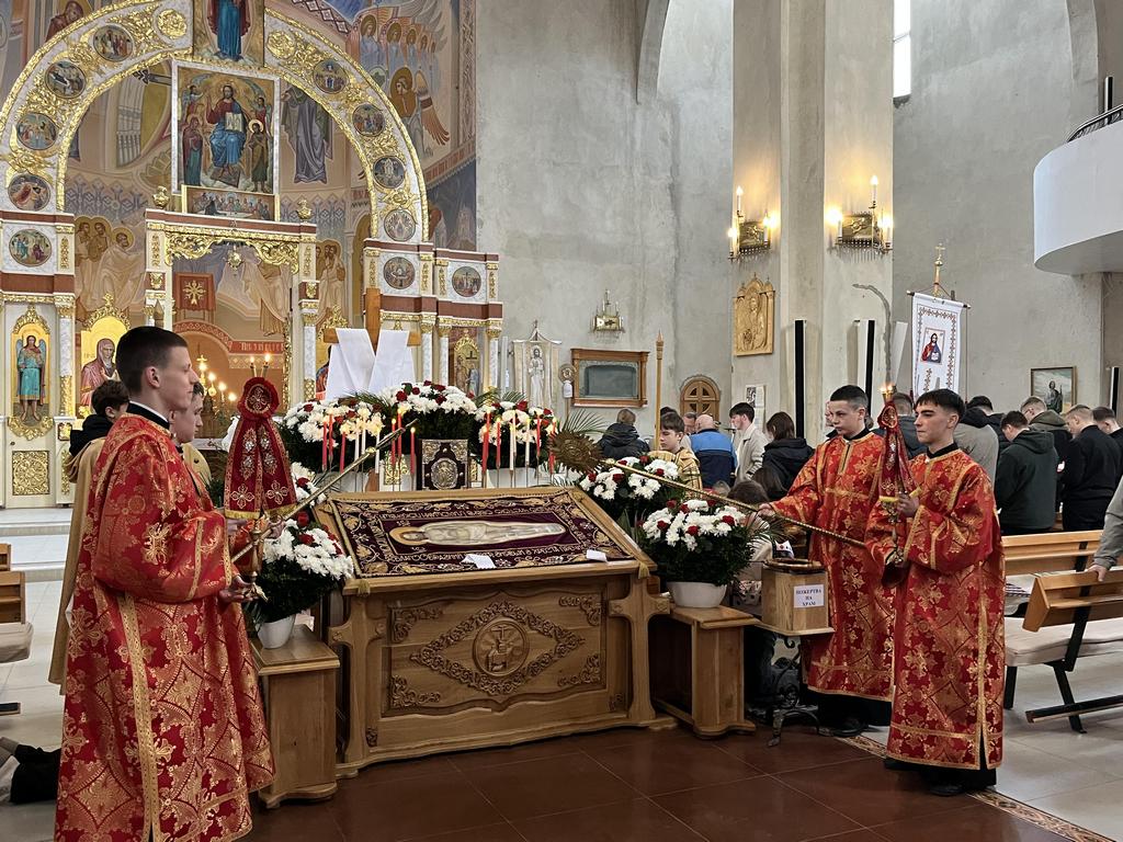 Особливо зворушливими стали богослужіння Великого Четверга та Страсної П’ятниці, під час яких віряни молитовно єдналися з Христом у Його стражданнях. За давньою церковною традицією у Великий Четвер преосвященний владика Дмитро здійснив Чин умивання ніг дванадцятьом священикам на спомин умивання ніг, яке здійснив Ісус Христос своїм учням.