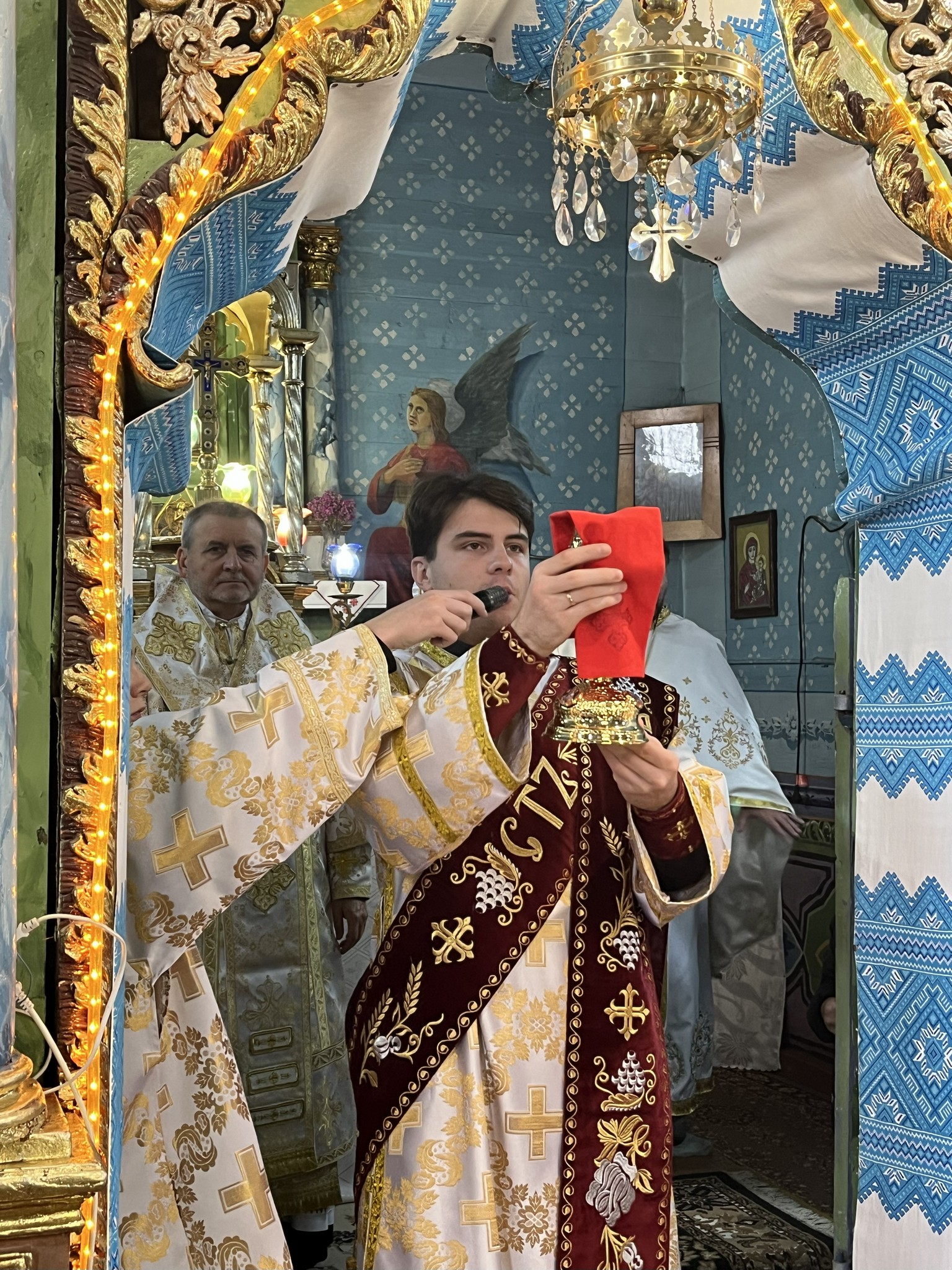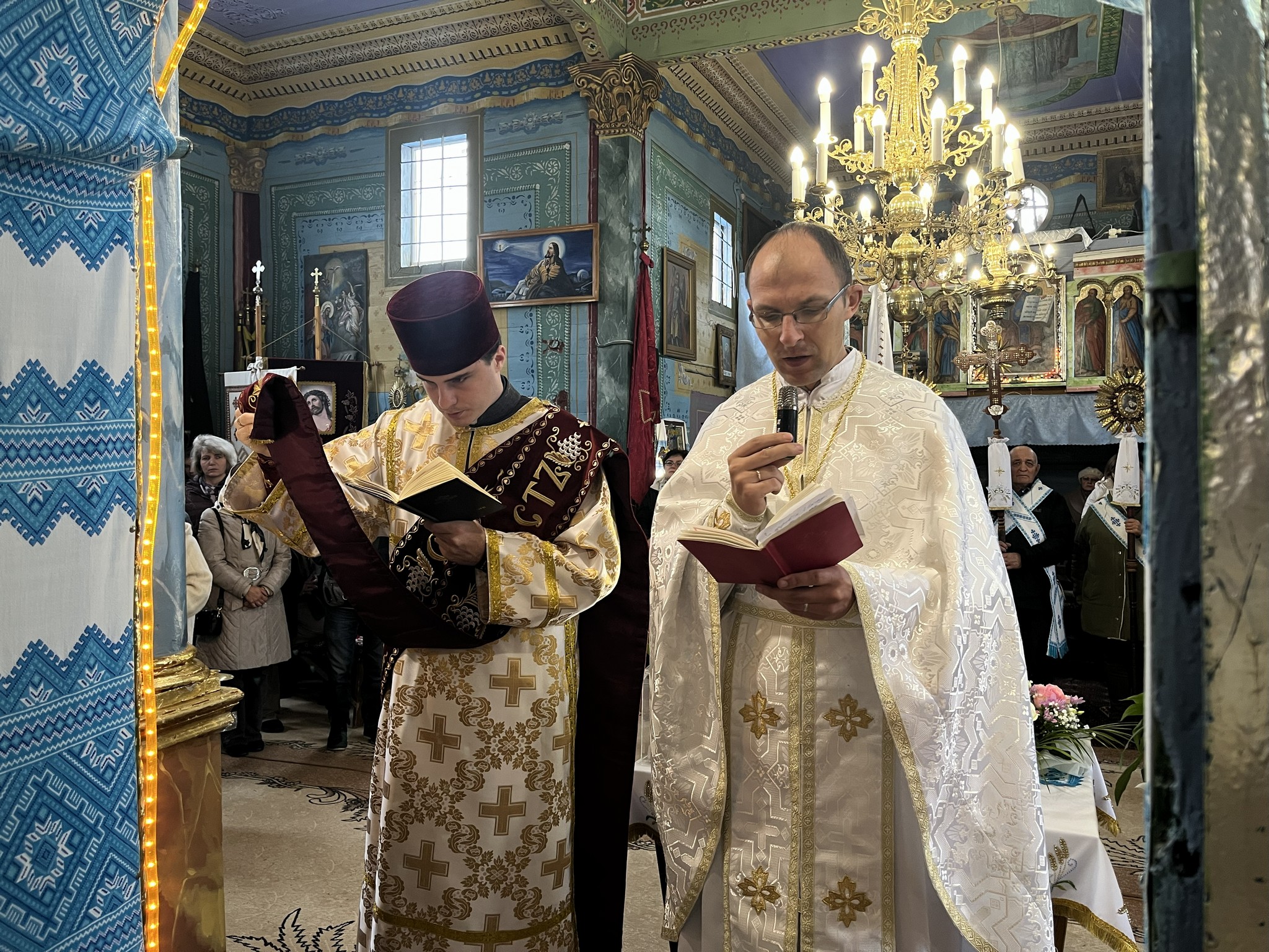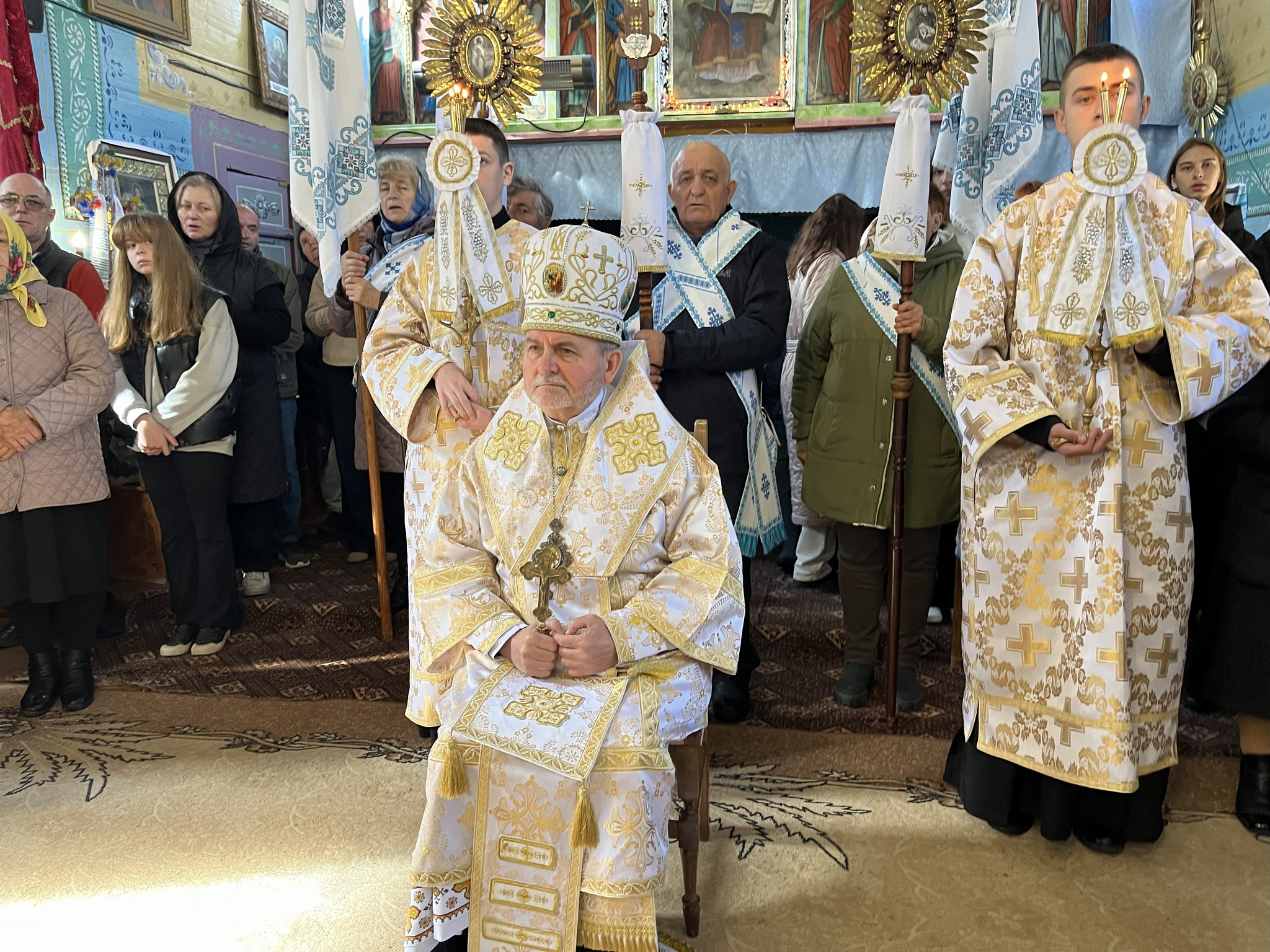 Після урочистої зустрічі архиєрея розпочалася велична архиєрейська Божественна Літургія за участі багатьох вірних та місцевого духовенства. У старовинні дерев’яній церкві Воздвиження Чесного Хреста Господнього лунали щирі прохання до Бога про закінчення війни та здоров’я для всіх військовослужбовців та волонтерів.
