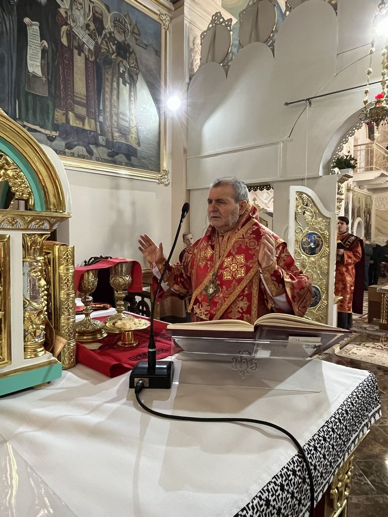 У проповіді владика Дмитро сказав: “Сьогодні ми молимося за упокій тих, хто віддав своє життя за нас. Також ми молимося за полегшення болю втрати для рідних і близьких. Кожен у свій час покидає цей світ, але коли є смерті людей повних сил та здоров’я, то це порушує наше розуміння. Через мужніх воїнів Бог захищає людей. Невідомо якою була б наша країна, якби не мужність українських воїнів. Кожному з вас нелегко переживати цей час. Але не впадаймо у відчай, бо смерть кожного героя - не марна. Господь з нами і ми повинні довіряти йому”.
