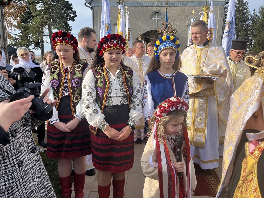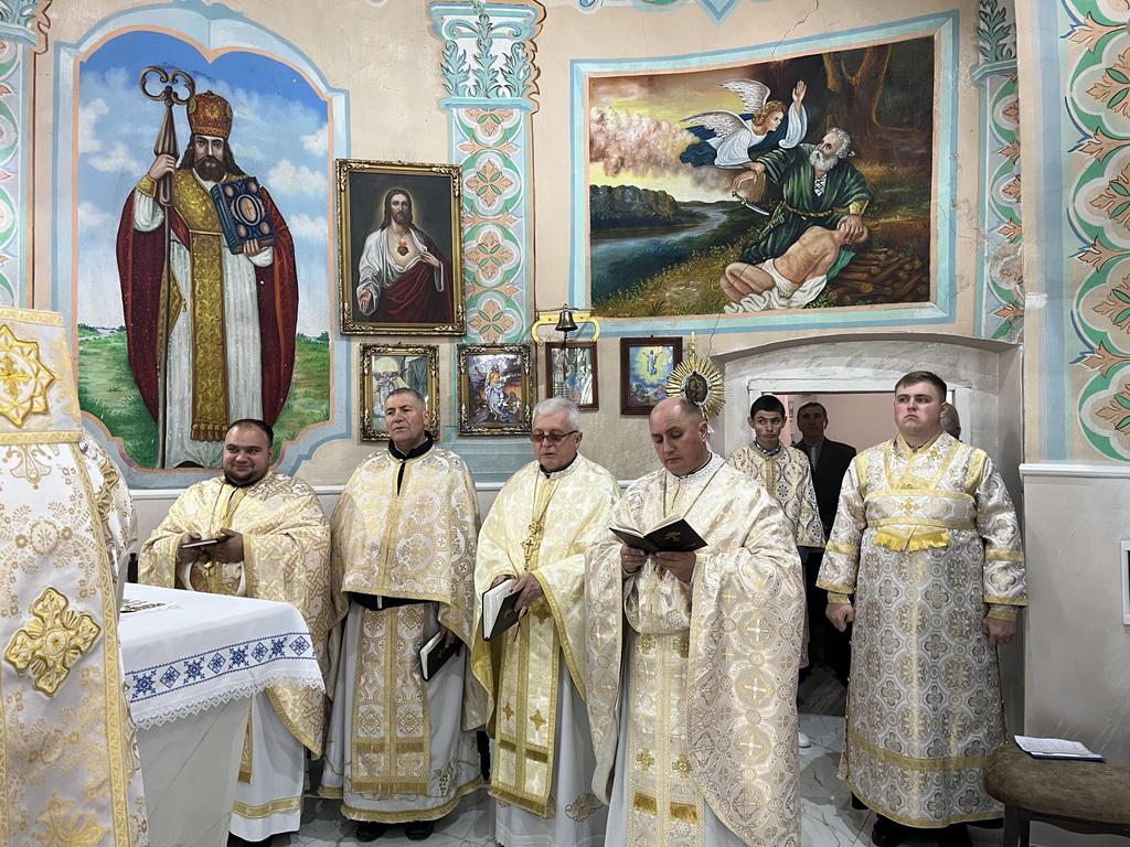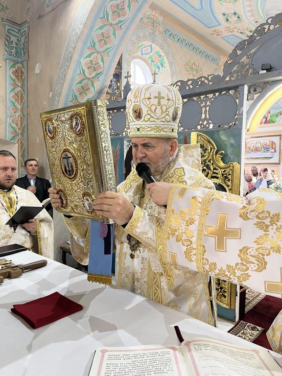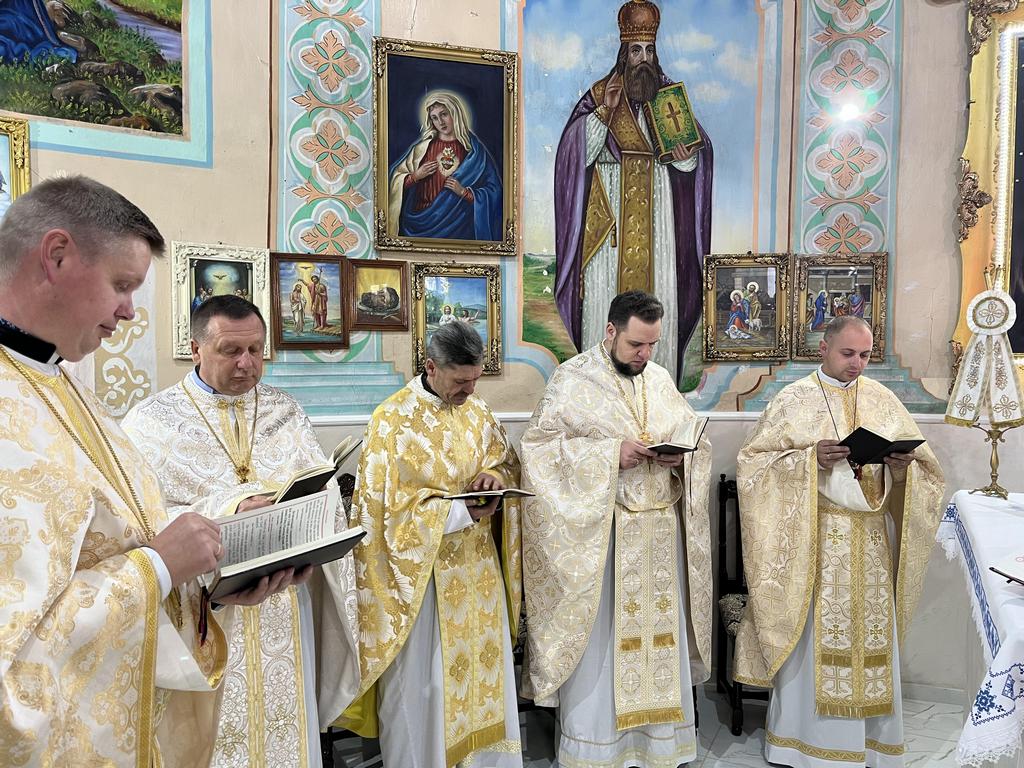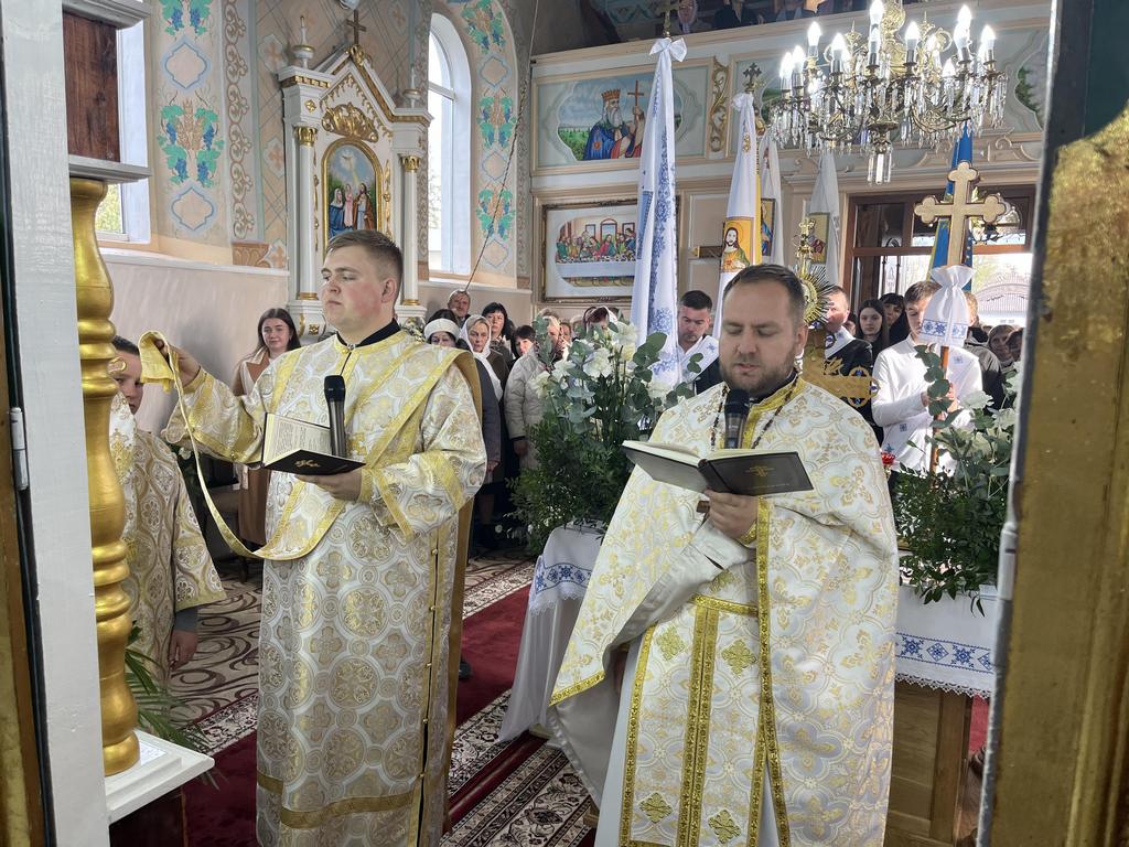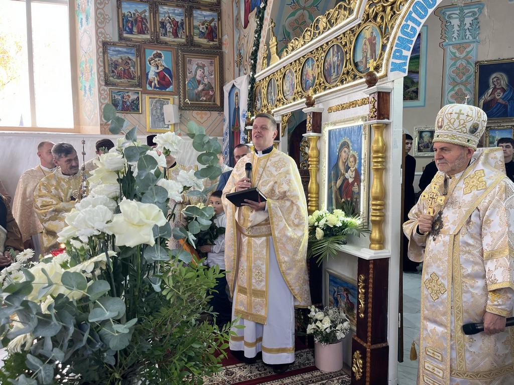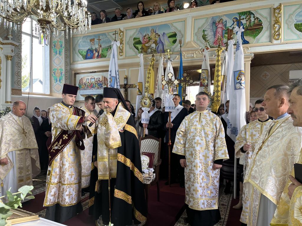 Духовна урочистість освячення оздоби храму зібрала у нього багато вірних та місцеве духовенства. Урочистість розпочалася із зустрічі преосвященного владики Дмитра Григорака на подвір’ї храму, після якої розпочалося богослужіння.