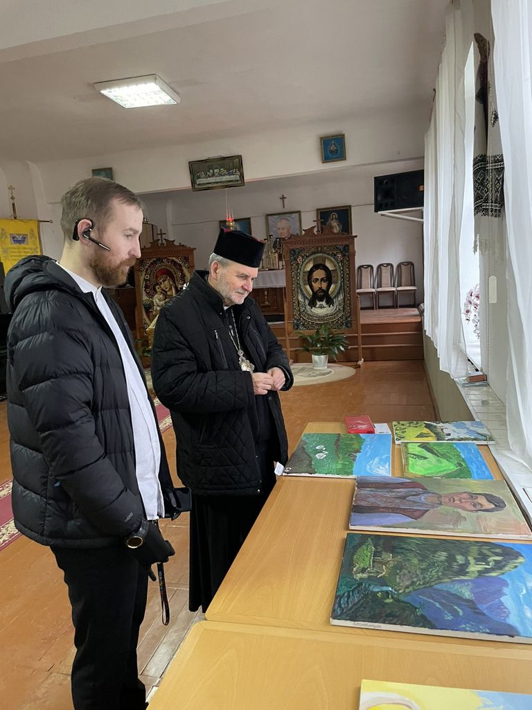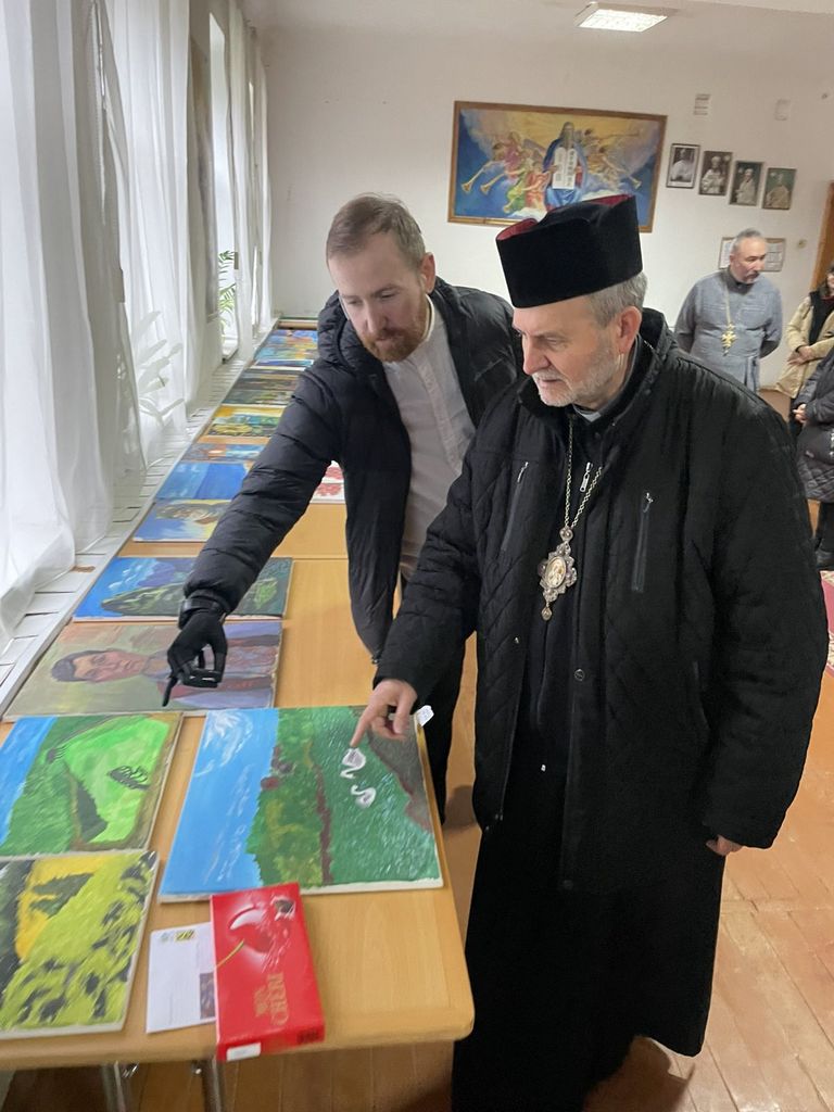 Нещодавно в Чортківській дяківсько-катехитичній академії імені священномученика Григорія Хомишина відбулася непересічна подія – виставка художніх робіт «Життя з вірою в перемогу» ветерана російсько-української війни Володимира Симанишина. Виставку мали змогу переглянути студенти та викладачі ЧДКА, а також поважні гості: преосвященний владика Дмитро Григорак, ЧСВВ – єпарх Бучацький, єпархіальний економ, секретар правлячого архиєрея о. Антон Крушельницький, ректор Академії о. д-р Володимир Білінчук, віце-ректор з навчальної роботи о. Іван Андрухів.