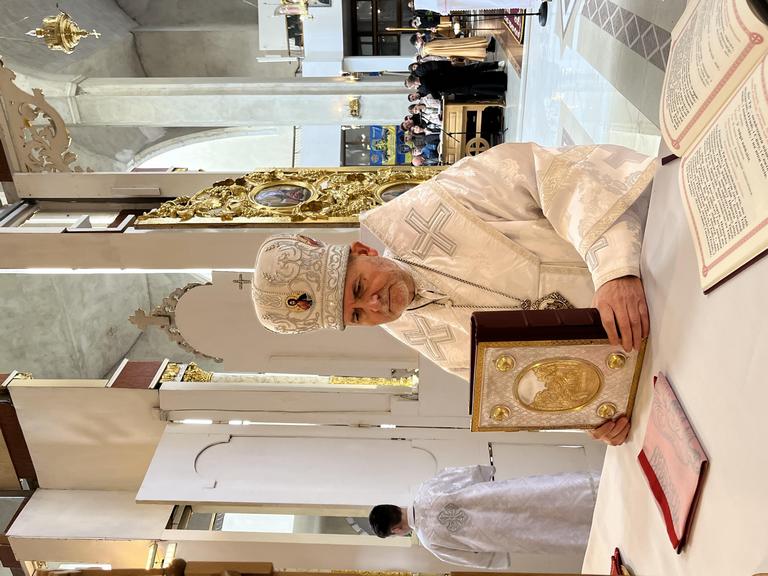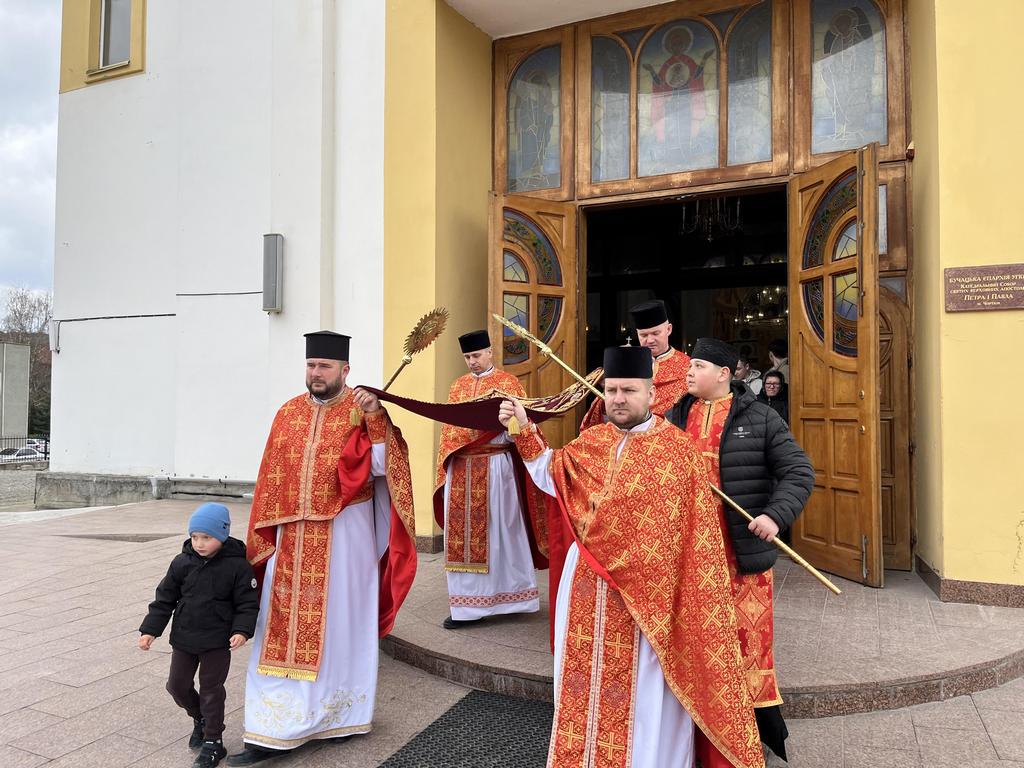 Особливо зворушливими стали богослужіння Великого Четверга та Страсної П’ятниці, під час яких віряни молитовно єдналися з Христом у Його стражданнях. За давньою церковною традицією у Великий Четвер преосвященний владика Дмитро здійснив Чин умивання ніг дванадцятьом священикам на спомин умивання ніг, яке здійснив Ісус Христос своїм учням.