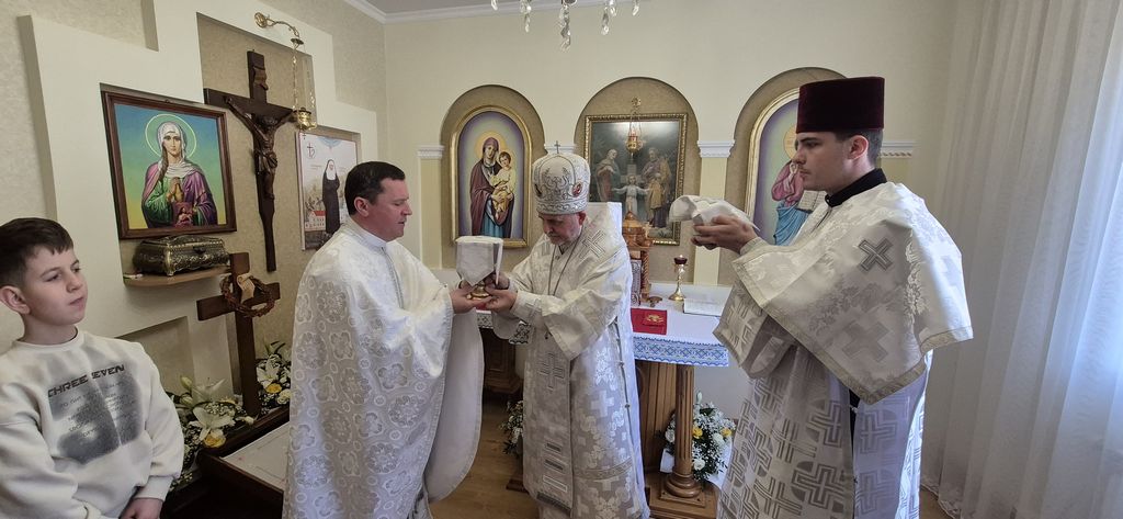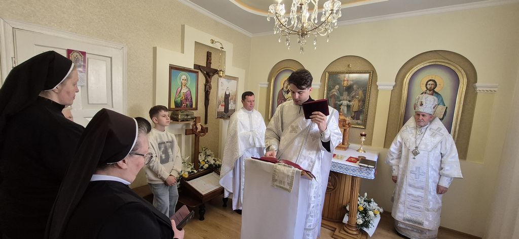 У Світлий вівторок, 14 квітня 2026 р. Б., до монастиря сестер Пресвятої Родини у Чорткові завітав із пастирським візитом владика Дмитро Григорак разом із сестрами Мироносицями.