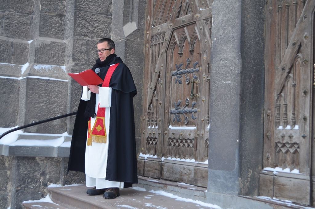 Також ,у своєму слові до вірних о.М.Левкович УПЦ КП пригадав вірним приклад про первомученика Стефана і апостола Павла, який спочатку переслідував християн,але через молитву і кров мученика апостол навернувся. О.Михайло заохотив молитися за тих, хто вбивав наших теперішніх мучеників євромайдану, щоб мучителі теж навернулися. Окрім того, отець звернувся до матерів, сестер, дружин, чиї сини, чоловіки,брати працюють в правоохоронних органах: »Моліться, щоб ваші діти не пішли проти вас, батьки, щоб не використали зла проти українського народу».О.Михайло щиро подякував за участь в такій єднальній молитві.