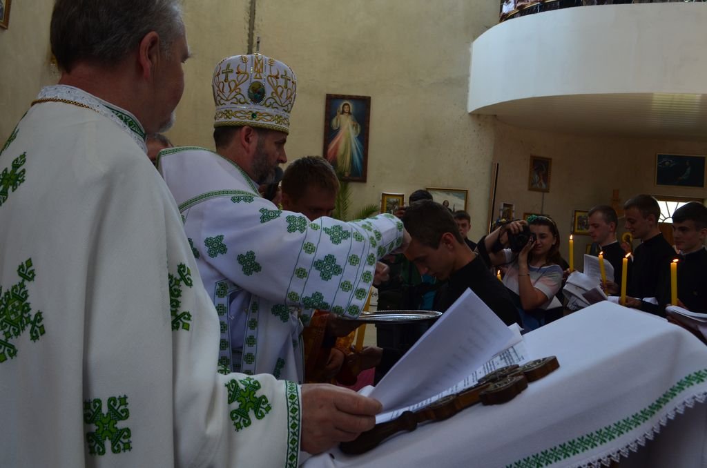 Молоді юнаки в білих стихарях зі свічками в руках нагадували Божих воїнів миру, які маючи чисті серця, прагнуть ділитися внутрішньою чистотою душі зі всіма. Єпарх Бучацький привітав випускників і побажав їм : «Бути добрими воїнами Христовими, бо у теперішній час є подвійна війна: одна на Сході нашої Держави, а друга - у наших душах між добром і злом. Саме тому, Господь вибирає молоді серця, повні енергії, собі до помочі. Постійно потрібно робити вибір між добром і злом»,- зауважив єпископ.