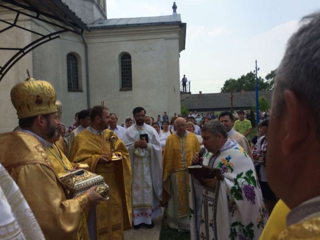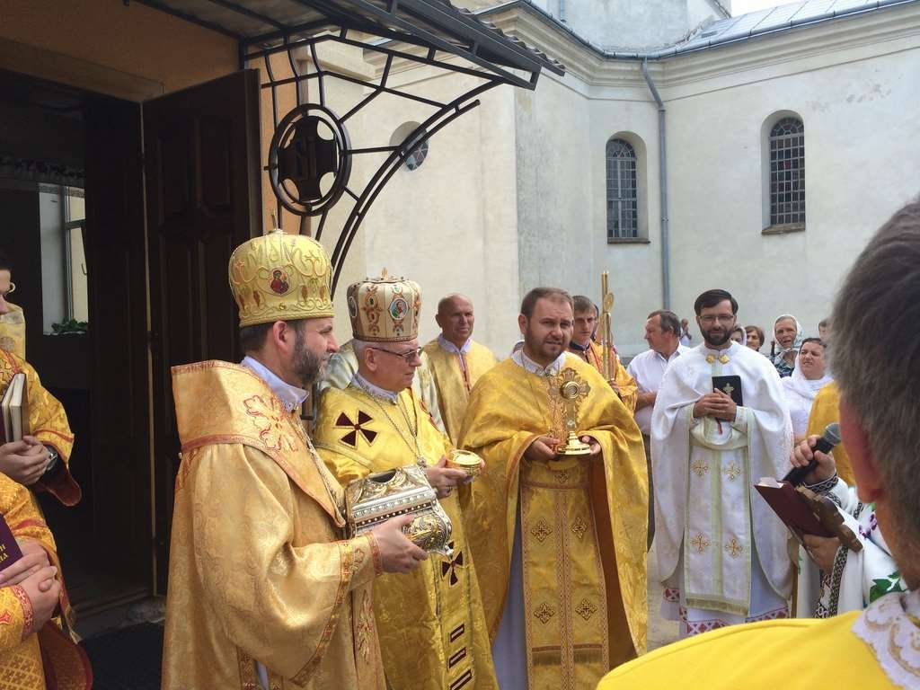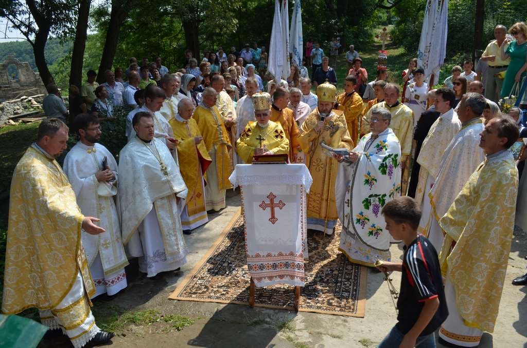 Відтак, лунали вітальні «Многоліття!» та духовний гімн України «Боже, Великий, Єдиний». Святкування завершувалося водосвяттям біля чудотворного джерела. Далі владики та священики окропили присутніх освяченою водою та посвятили реанімобіль придбаний за кошти вірних УГКЦ із Папської базиліки Святої Марії Більшої у Римі та кошти, які через Гарнізонний Храм Святих Верховних Апостолів Петра і Павла у Львові надав о. Петро Свідрун та громада св. Йосафата, УГКЦ м. Фрайбург, Німеччина. Завдяки цьому автомобілю медики зможуть надавати невідкладну допомогу на території східної України.