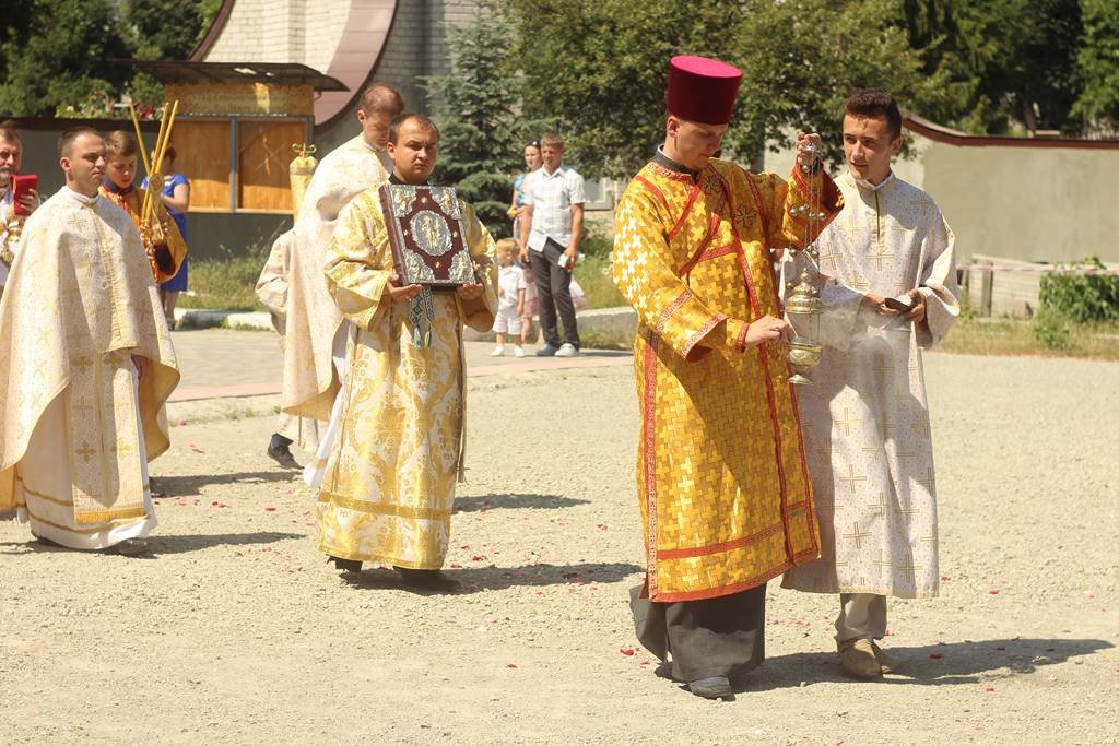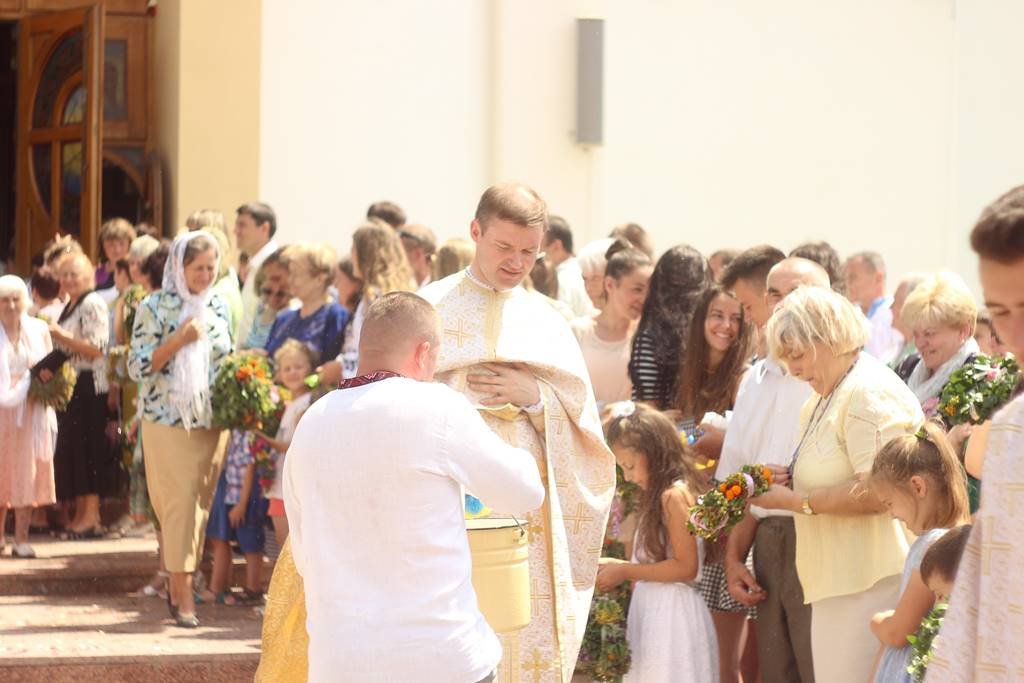 Після Божественної Літургії відбувся процесійний обхід із Святими Тайнами довкола катедрального собору, а потім освячення віночків та окроплення вірних Святою водою.