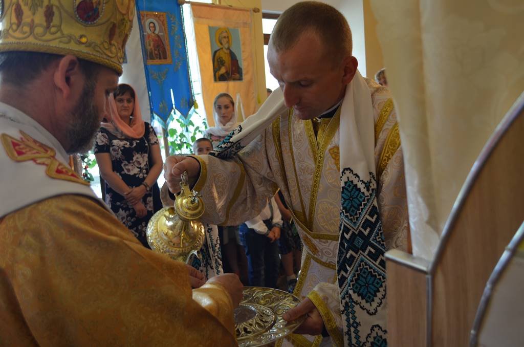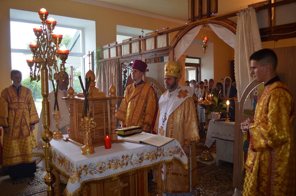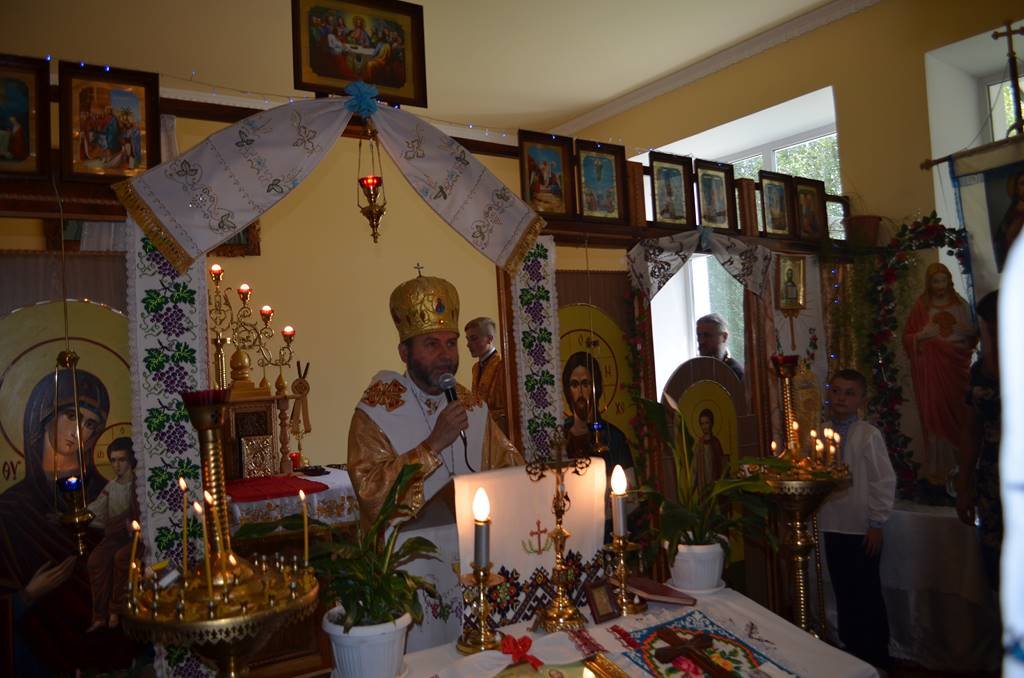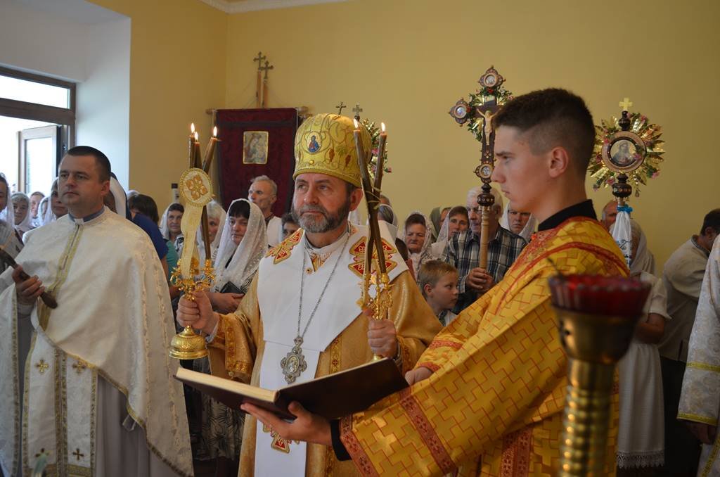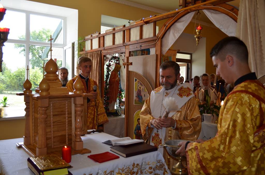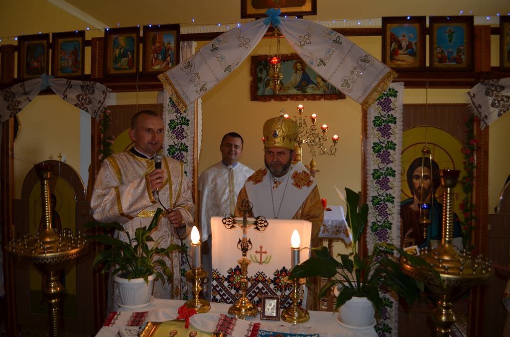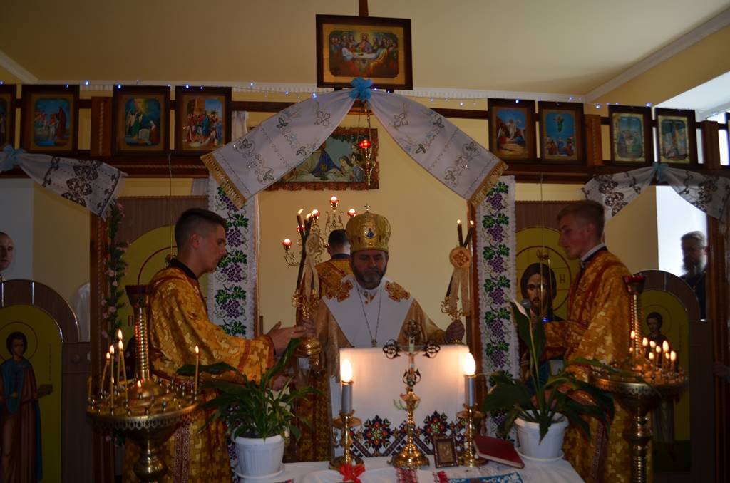 Перед храмом Єпарха Бучацького, з хлібом та сіллю, зустрічала святошна громада на чолі з о. Петром Гудимою. Після зустрічі Владика Дмитро здійснив чин освячення престолу та кивоту, а відтак очолив Архиєрейську Божественну Літургію. Єпископу співслужили: о. Петро Гудима та о. Олег Гладун.