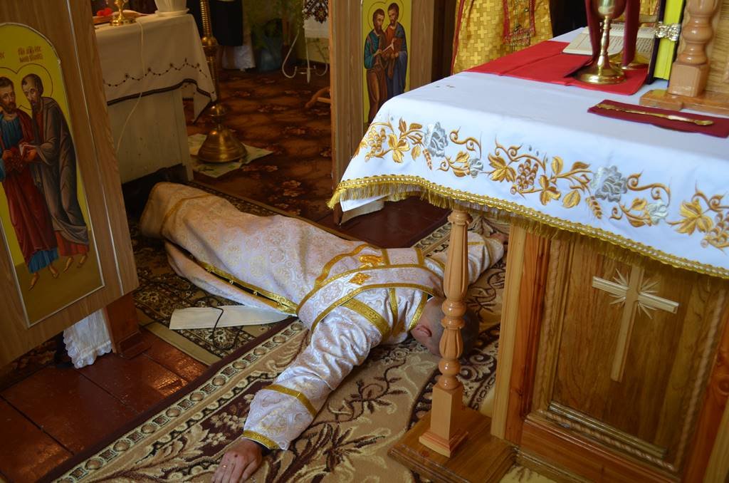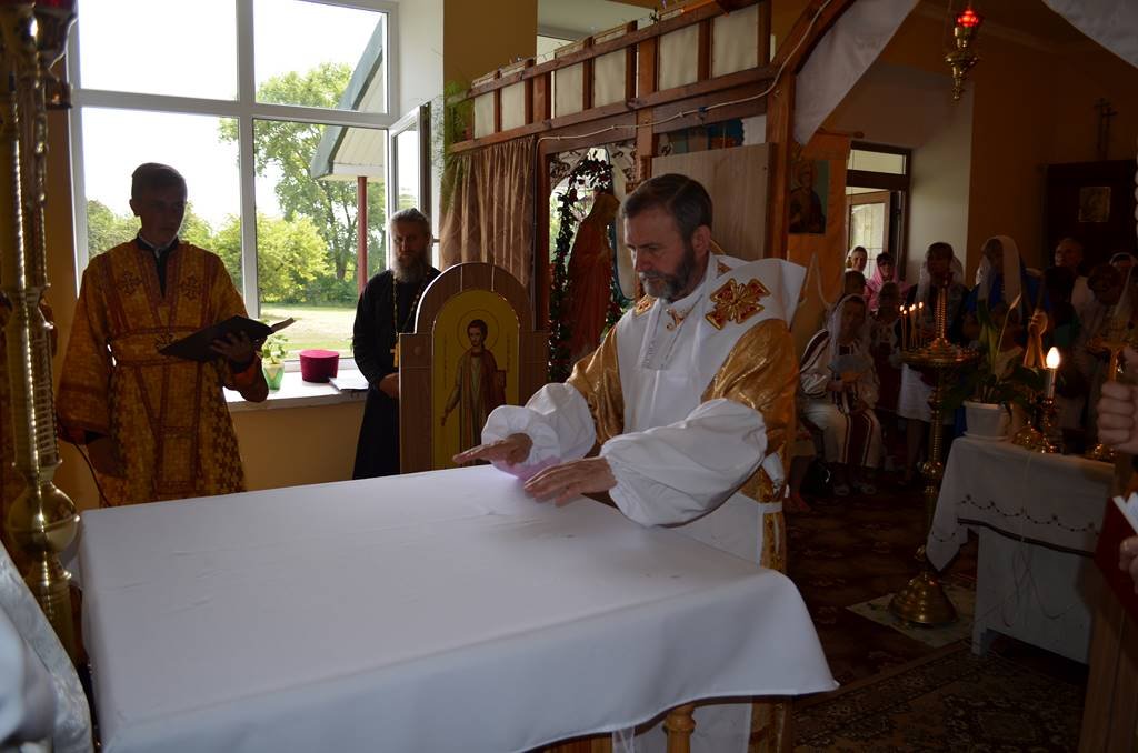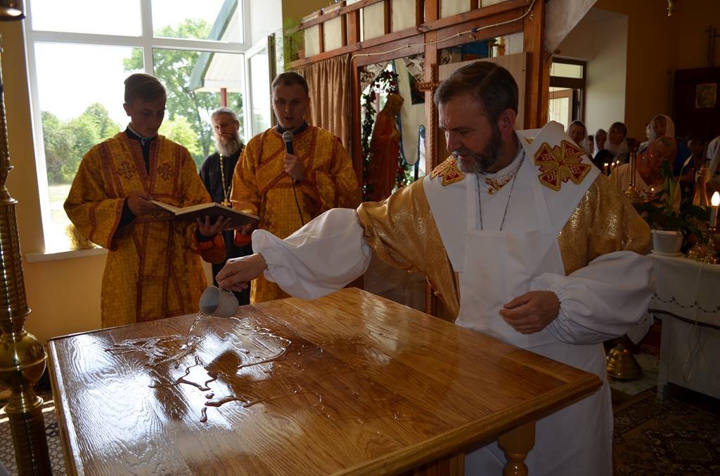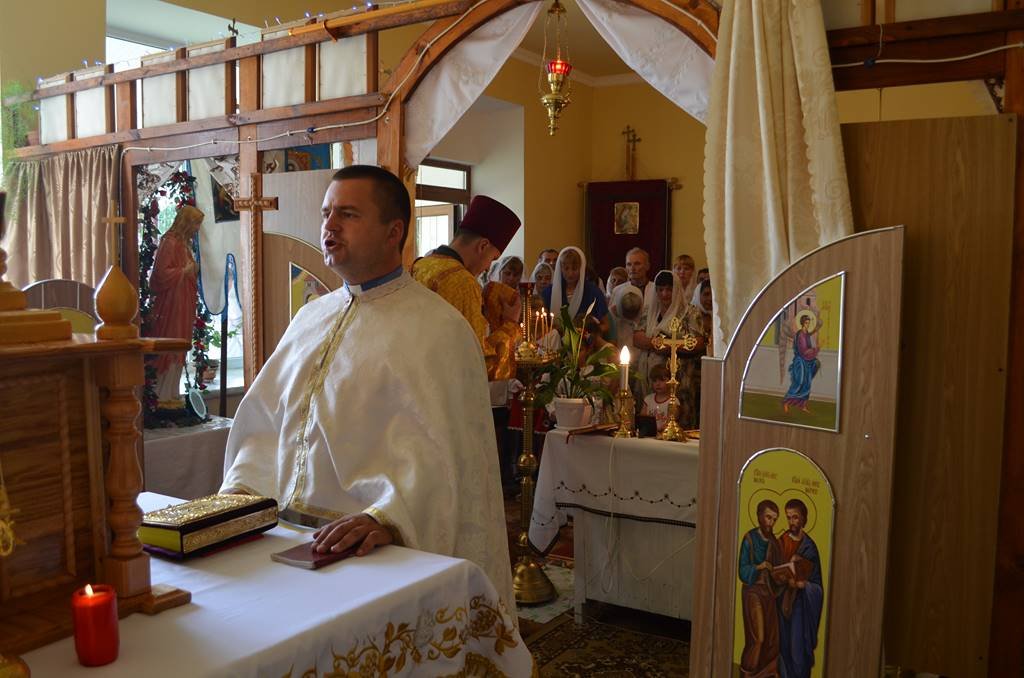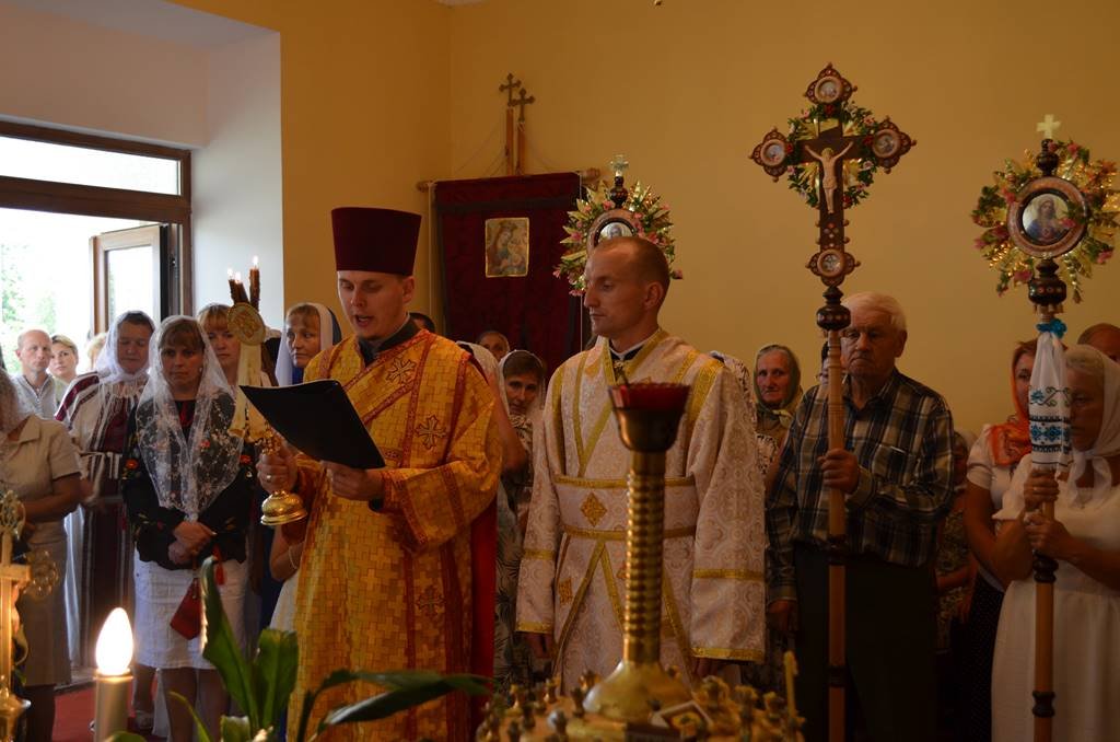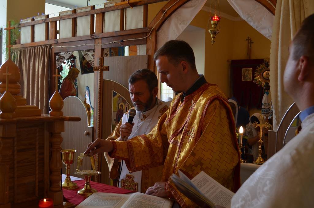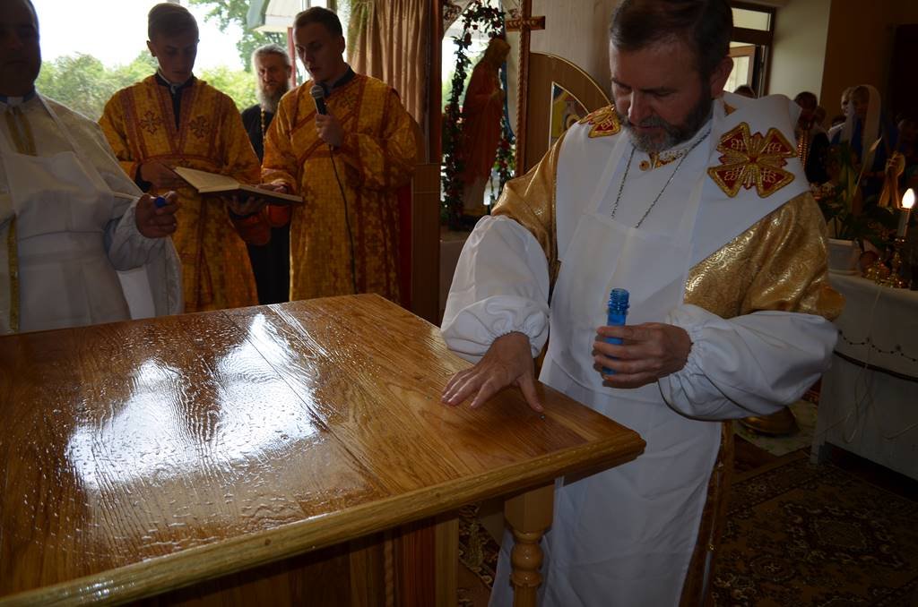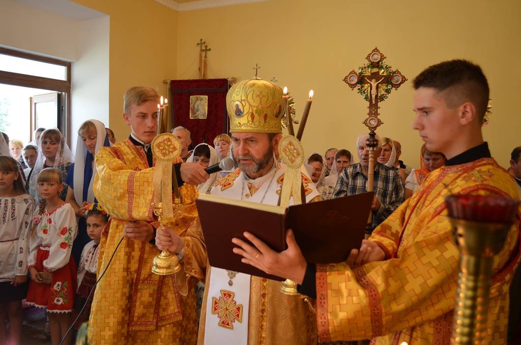 Перед храмом Єпарха Бучацького, з хлібом та сіллю, зустрічала святошна громада на чолі з о. Петром Гудимою. Після зустрічі Владика Дмитро здійснив чин освячення престолу та кивоту, а відтак очолив Архиєрейську Божественну Літургію. Єпископу співслужили: о. Петро Гудима та о. Олег Гладун.