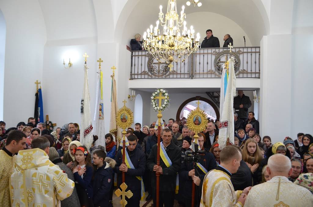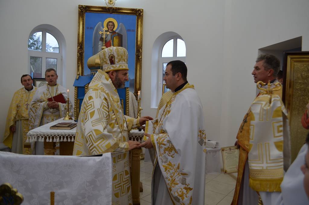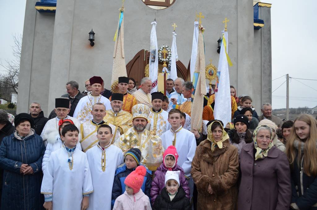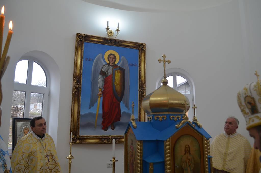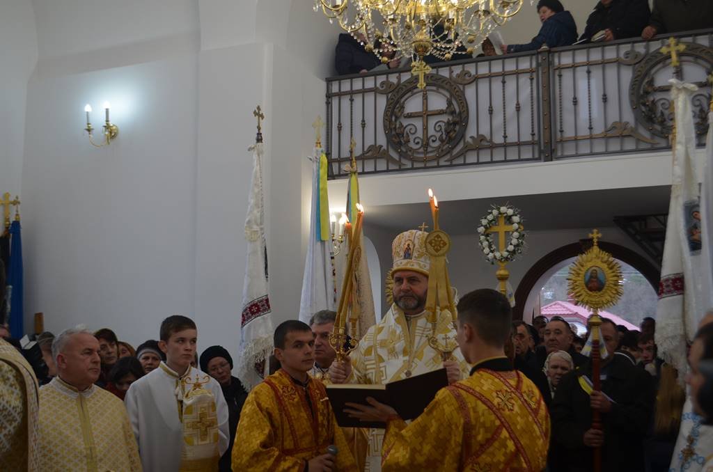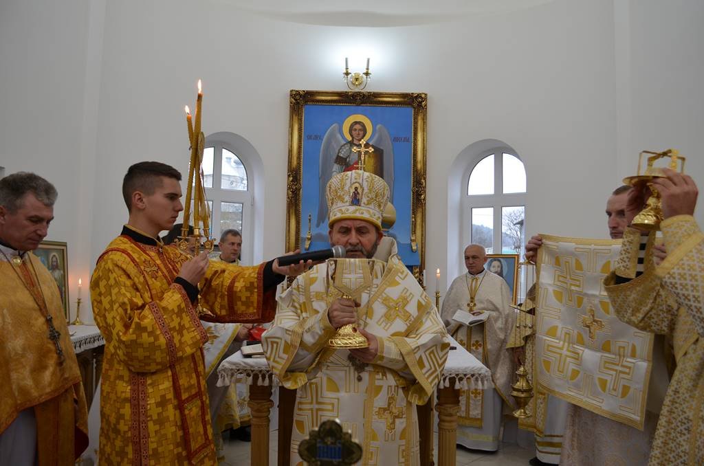 Опівдні перед храмом св. Арх. Михаїла з віршами та привітаннями архиєрея зустрічала парафіяльна молодь та настоятель храму о. Володимир Рачковський. Опісля розпочався чин освячення храму, престолу, кивоту, проскомидійника та тетраподу, а відтак архиєрейська Божественна Літургія, яку Єпарху Бучацькому співслужили священики із Заліщицького та сусідніх деканатів.