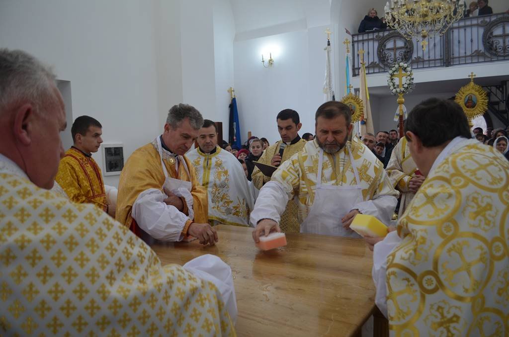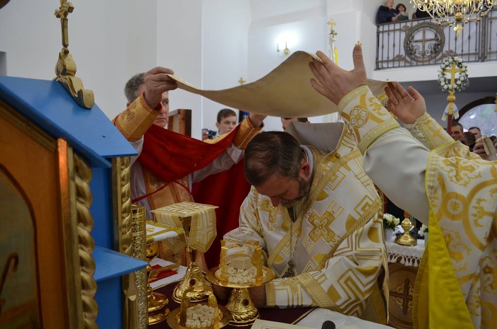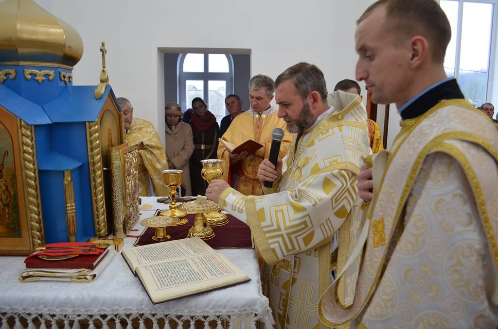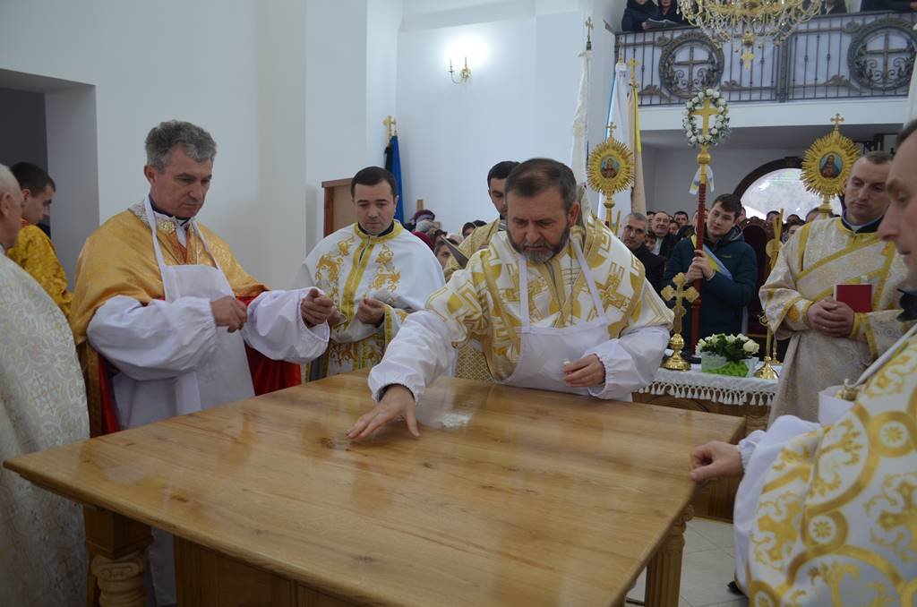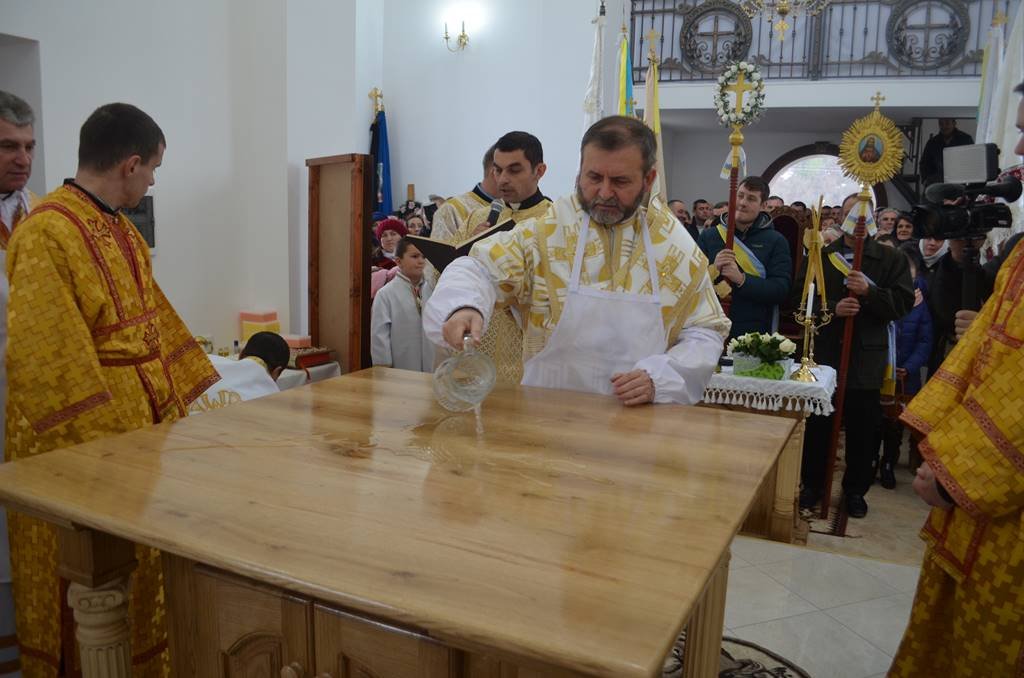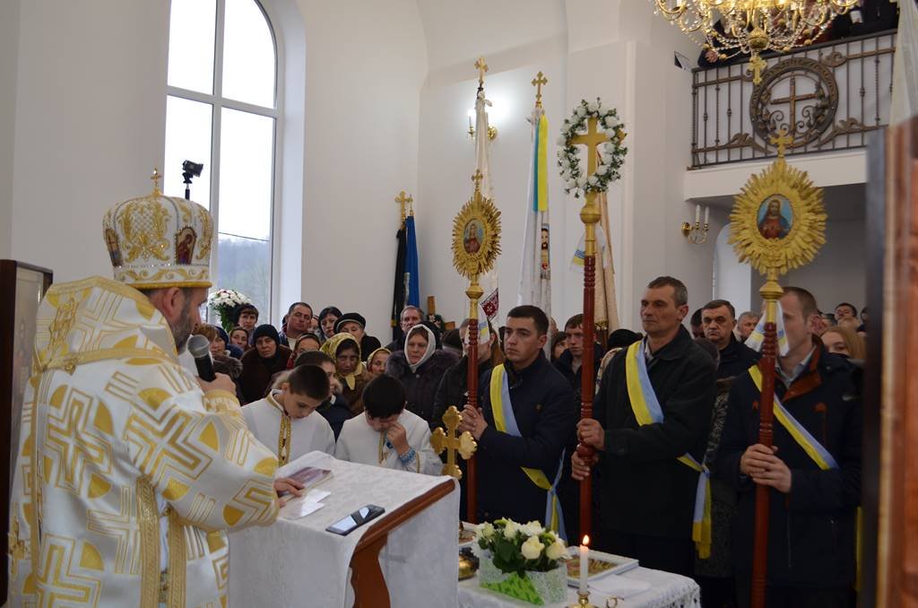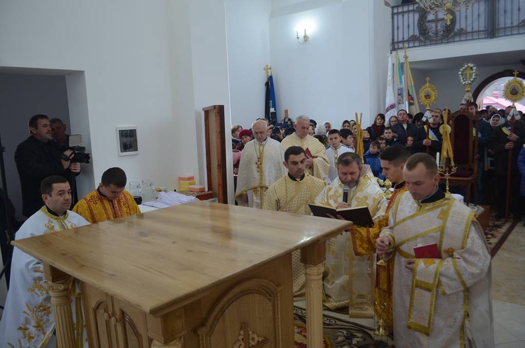 Опівдні перед храмом св. Арх. Михаїла з віршами та привітаннями архиєрея зустрічала парафіяльна молодь та настоятель храму о. Володимир Рачковський. Опісля розпочався чин освячення храму, престолу, кивоту, проскомидійника та тетраподу, а відтак архиєрейська Божественна Літургія, яку Єпарху Бучацькому співслужили священики із Заліщицького та сусідніх деканатів.