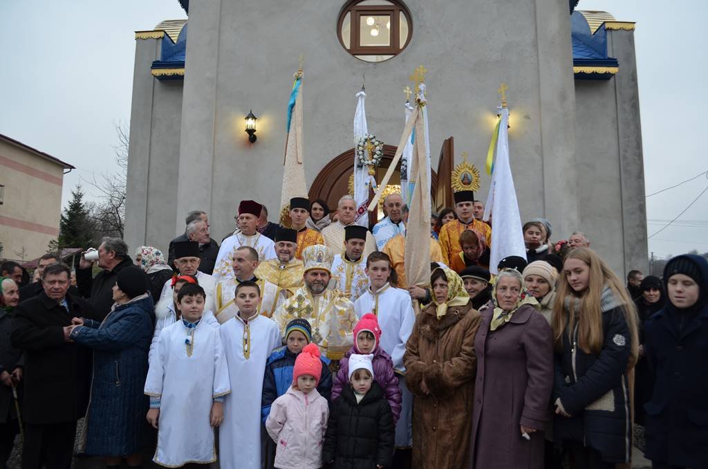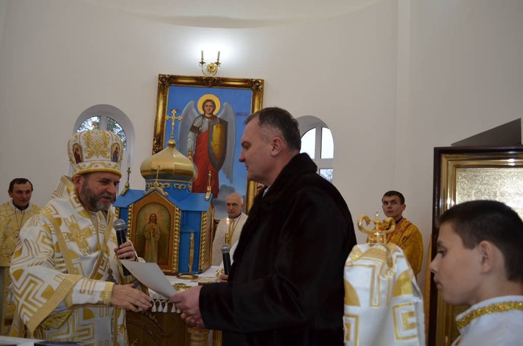 «Євангеліє - це не збірка цікавих історій, це інформація для нашого щоденного життя, через яку Господь дає нам свою силу…», - підсумував владика. По Божественній Літургії владика Дмитро нагородив настоятеля парафії о. Володимира Рачковського священичою нагородою - золотим хрестом з прикрасами та подякував всій громаді, яка змогла за три роки побудувати прекрасний храм. Відтак о. Ярослав Шмиглик – декан Заліщицький - зачитав подячні грамоти, якими владика Дмитро нагородив найбільш активних жертводавців та будівничих. Насамкінець відвідин лунало «многоліття» і духовний гімн України «Боже, Великий, Єдиний», а завершилось торжество водосвяттям.