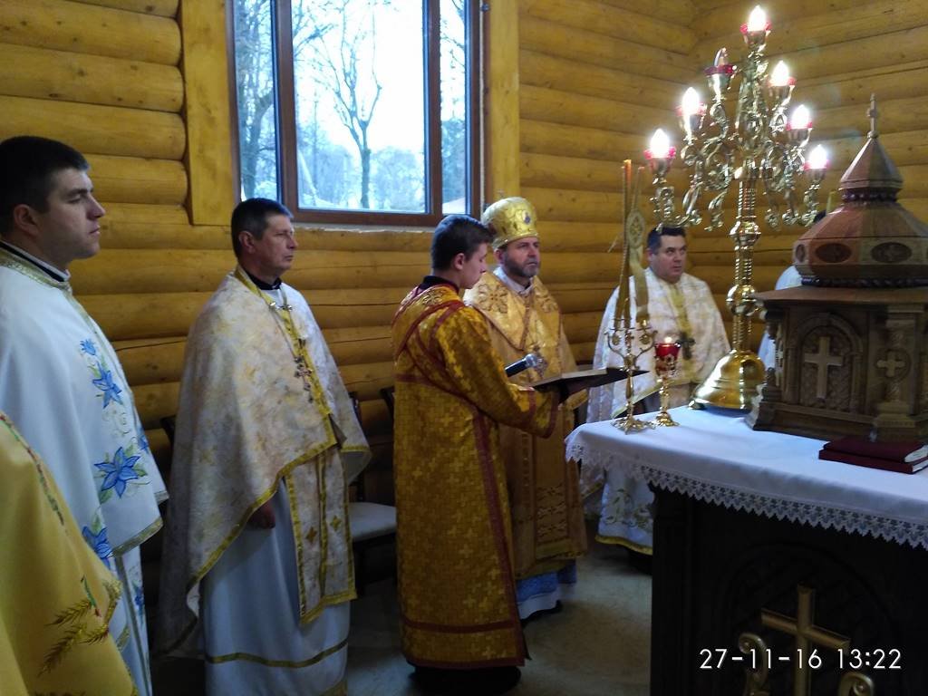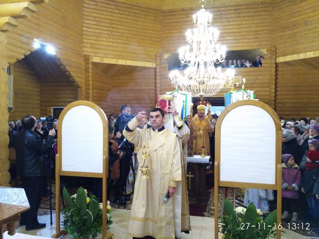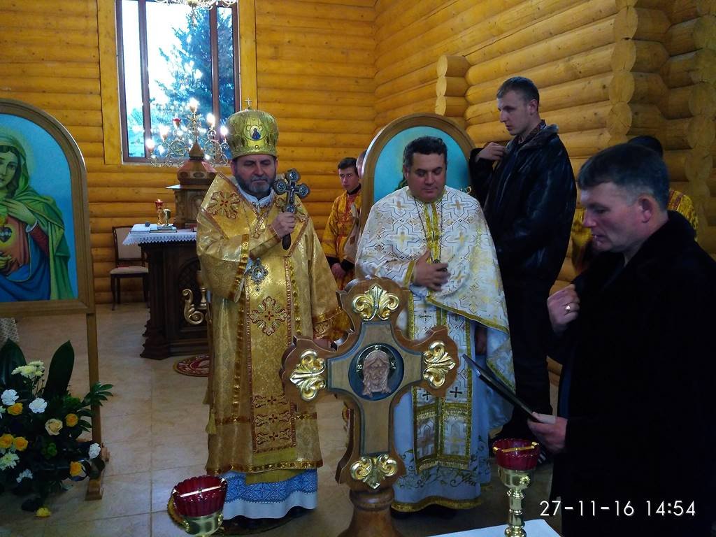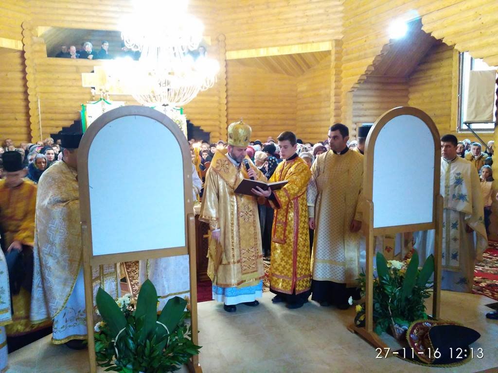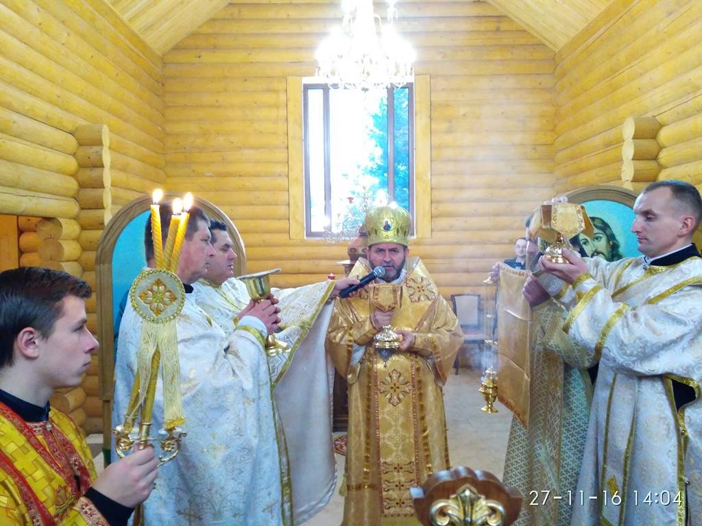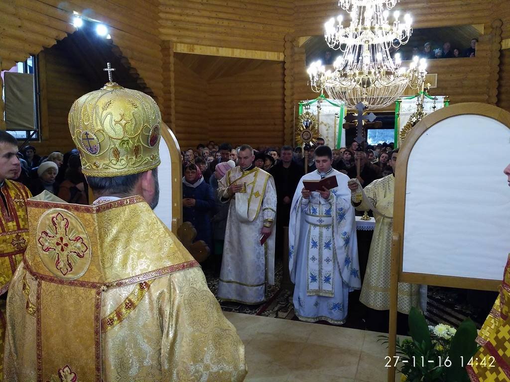 Перед храмом із хлібом та сіллю Архиєрея зустрічали парафіяни з настоятелем о. Володимиром Забалотним – протосинкелом. Опісля розпочався чин освячення храму, престолу, кивоту, проскомидійника та тетраподу, а відтак Архиєрейська Божественна Літургія, яку Єпарху Бучацькому співслужили: о. Володимир Заболотний, декан - о. Ярослав Палій, о. Петро Панасюк, о. Петро Цвях, о. Володимир Білінчук та о. Іван Кикуш.