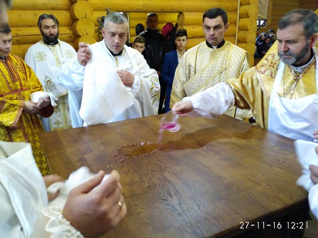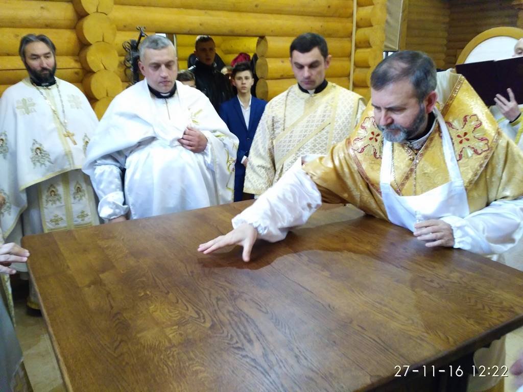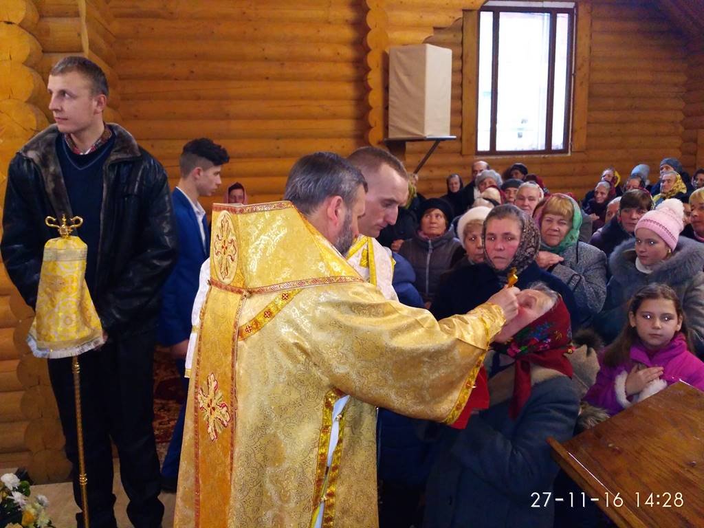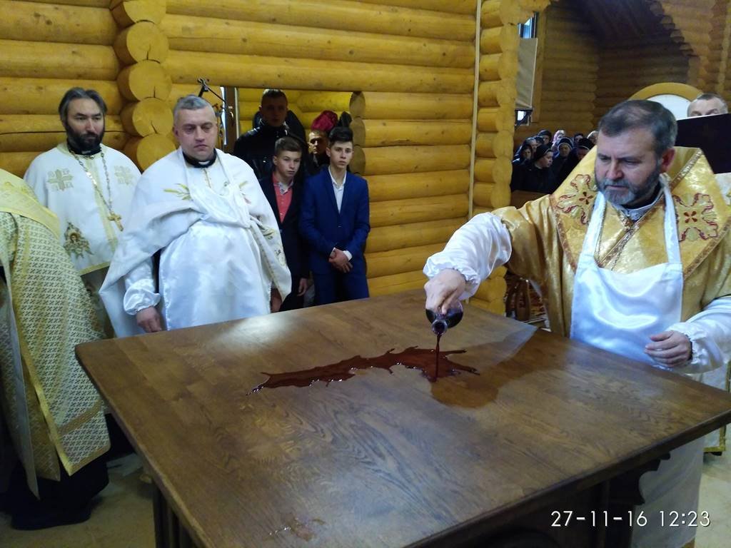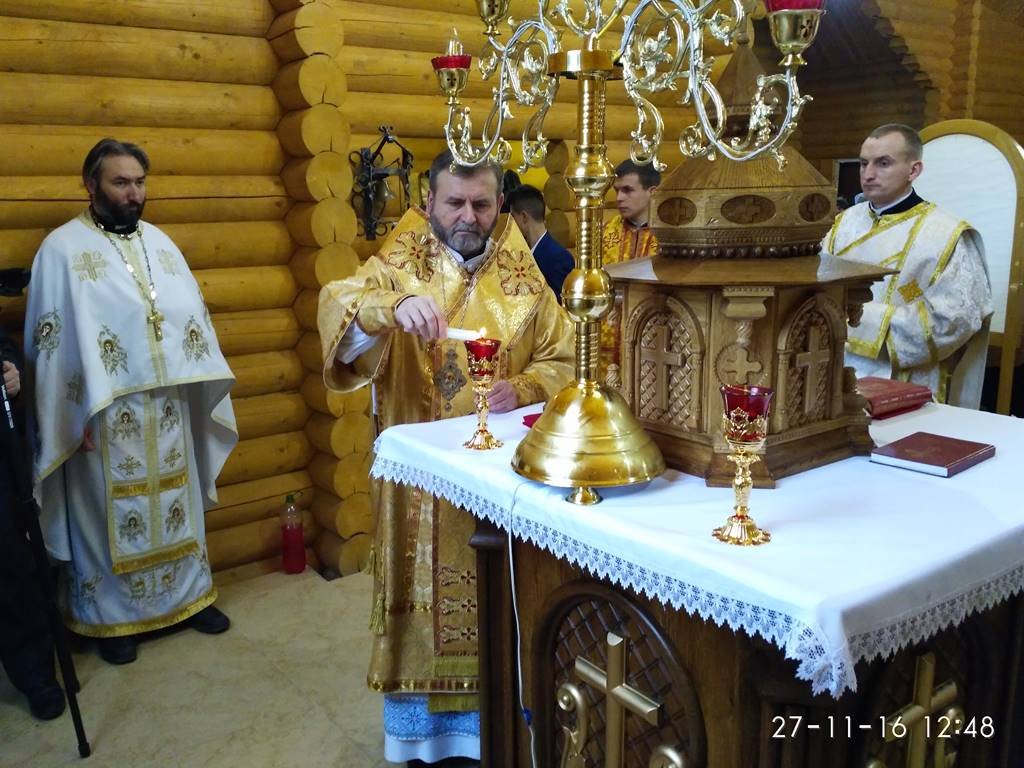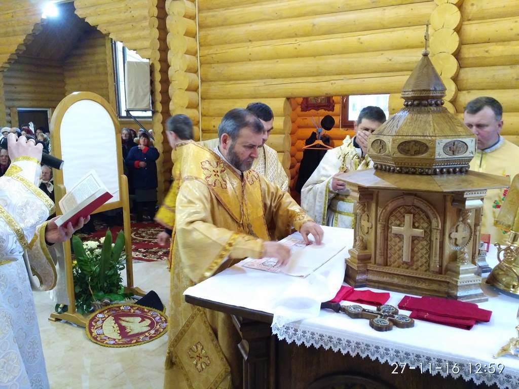 Перед храмом із хлібом та сіллю Архиєрея зустрічали парафіяни з настоятелем о. Володимиром Забалотним – протосинкелом. Опісля розпочався чин освячення храму, престолу, кивоту, проскомидійника та тетраподу, а відтак Архиєрейська Божественна Літургія, яку Єпарху Бучацькому співслужили: о. Володимир Заболотний, декан - о. Ярослав Палій, о. Петро Панасюк, о. Петро Цвях, о. Володимир Білінчук та о. Іван Кикуш.