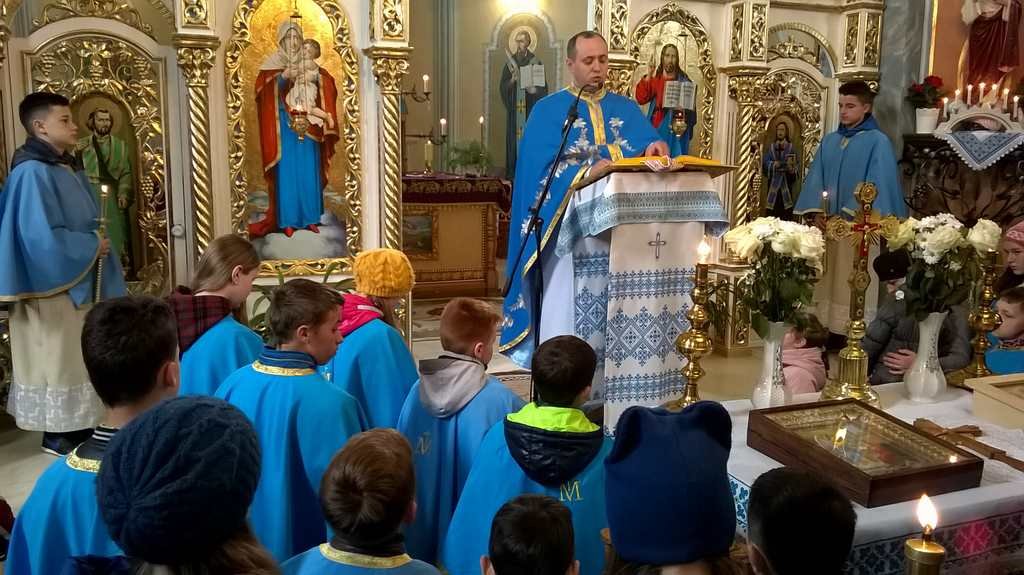 Від початку навчального року, на запрошення отця-пароха Степана Котика, сестри Пресвятої Родини готували разом з катехиткою п. Лесею Худзік дітей до Марійської посвяти. Велику підтримку, як катехити так і діти, відчули від директора місцевої школи - Івана Станіславовича Волощука, який завжди старається про християнське виховання своїх учнів. Також слід зауважити, що для цьогорічних вступників в Марійську Дружину потягаючим прикладом стали їхні старші друзі, які вже вступили до членства в попередні роки. Діти самі називали прізвища і ім’я тих, на кого хочуть рівнятися і це дуже потішно.