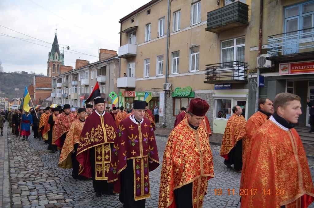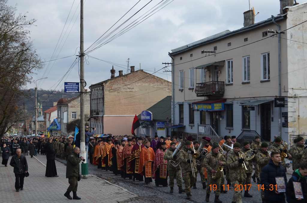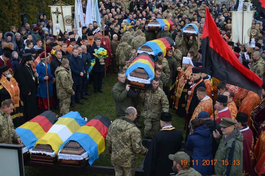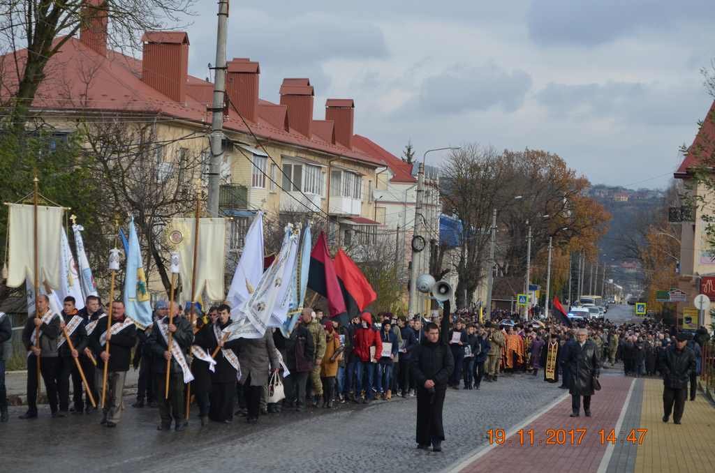 Після молінь у храмі багаточисельна процесійна хода на чолі з духовенством, родиною загиблих, представниками влади та патріотичних організацій, з хоругвами, синьо-жовтими та червоно-чорними прапорами, під оркестрову музику, похоронні та патріотичні пісні, вулицями міста вирушила до міського кладовища.