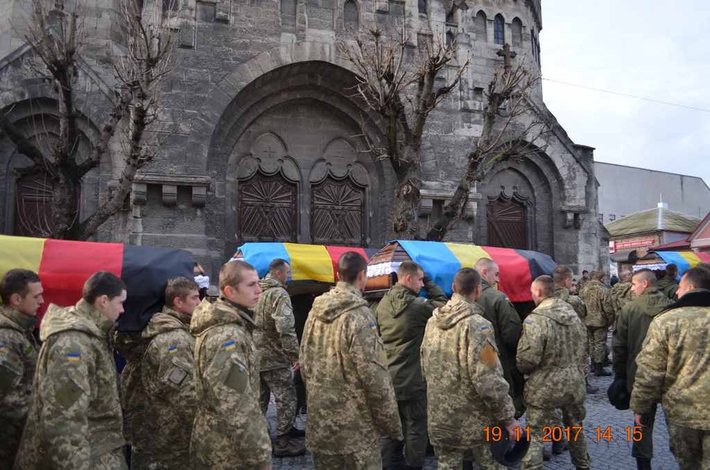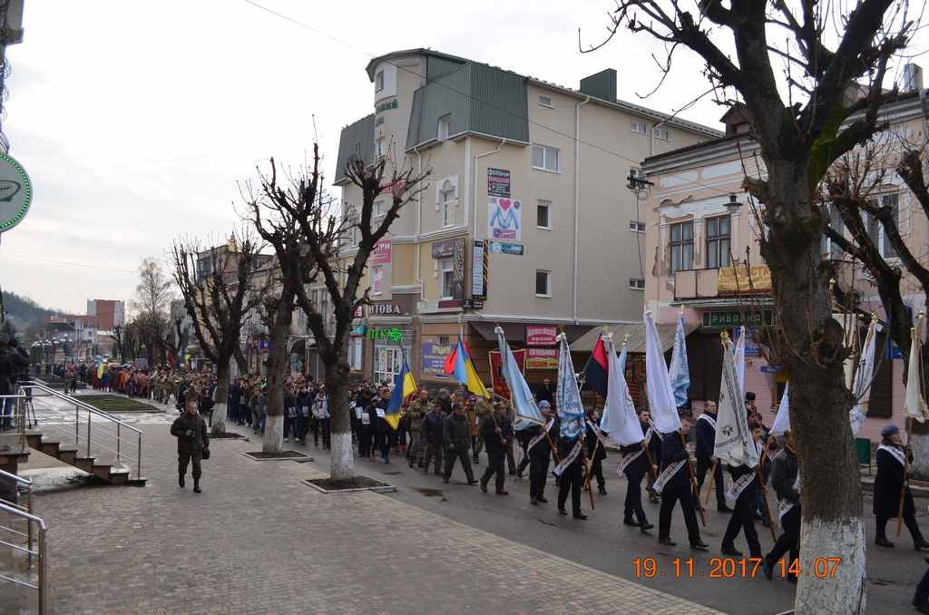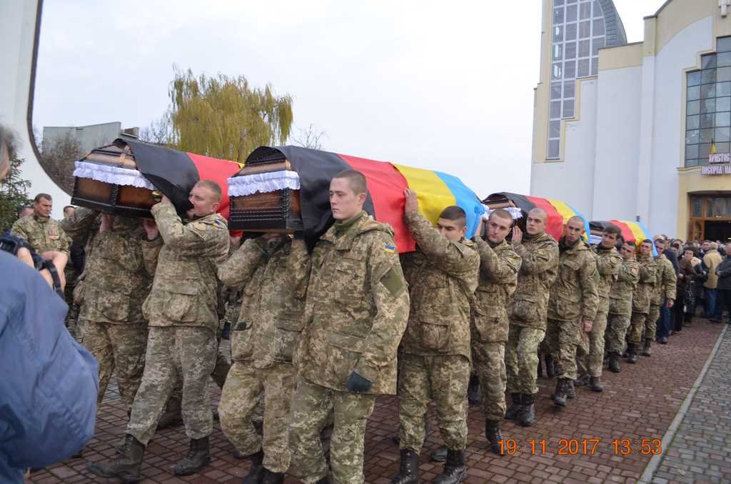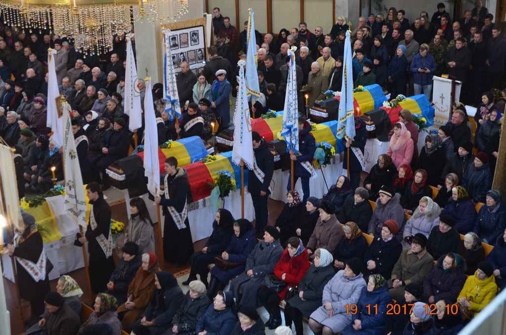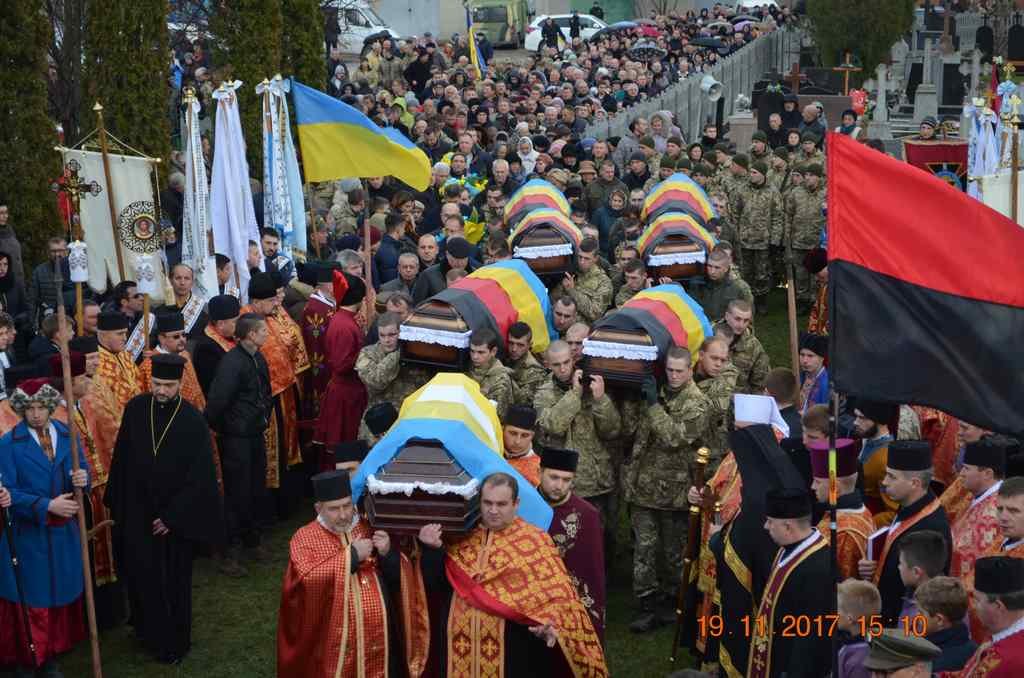Після молінь у храмі багаточисельна процесійна хода на чолі з духовенством, родиною загиблих, представниками влади та патріотичних організацій, з хоругвами, синьо-жовтими та червоно-чорними прапорами, під оркестрову музику, похоронні та патріотичні пісні, вулицями міста вирушила до міського кладовища.