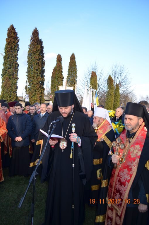 Далі архиєпископ продовжив: «Сьогодні ми стоїмо на святій землі. Це місце є освячене кров’ю наших братів, що прийняли мученицьку смерть за свою вірність Україні. Їхня жертва, принесена на вівтар волі незалежності нашого народу, не може бути нами забута чи неоцінена. Вояки ОУН і УПА вели нерівну боротьбу з усіма ворогами українського народу: вони боролися, як з червоними загарбниками зі сходу, так і з коричневими із заходу. Вороги України, навіть і сьогодні, стараються заявити на весь світ та звинуватити українських патріотів у підтримці фашизму. Наші замордовані брати і сестри своїм власним життям та свідченням своєї крові, пролитої рукою загарбника, сьогодні спростовують усі ці фальшиві звинувачення. Фашистський тоталітаризм ненавидів усе українське, не менше ніж тоталітаризм московський, старався усіма можливими засобами придушити будь-яке намагання українців до незалежності і волі».