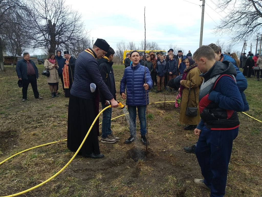 Після Божественної літургії також усі присутні спільно помолилися молитву на вервиці за збереження життя кожної зачатої дитини. Потім процесійно вийшли на висадку “Алеї ненародженої дитини”, яка розпочалася з чину насадження дерев та благословення свяченою водою преосвященним Владикою Дмитрієм, який і розпочав посадку дерев. За прикладом владики до посадки долучилось духовенство та вірні.