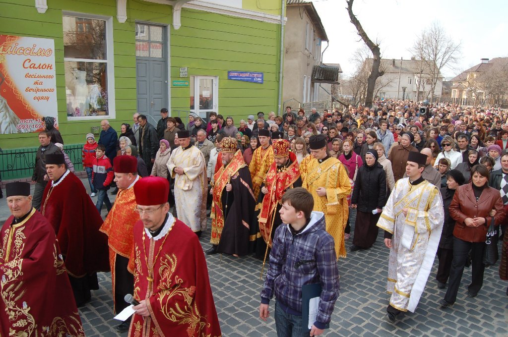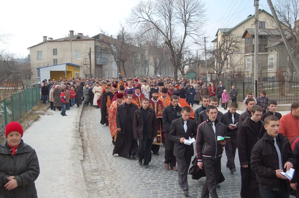 Кінцевим моментом Хресної ходи стали відвідини катедрального собору верховних апостолів Петра і Павла. У катедрі митрополит Василій виголосив зворушливу, емоційну проповідь, у якій закликав віруючих якнайбільше молитись за своїх рідних, за співгромадян, прощати одні одним, позбавлятись від гріхів. Далі до присутніх звернувся владика Дмитро, котрий подякував усім, котрі спричинилися до проведення духовного заходу та долучилися до дійства.